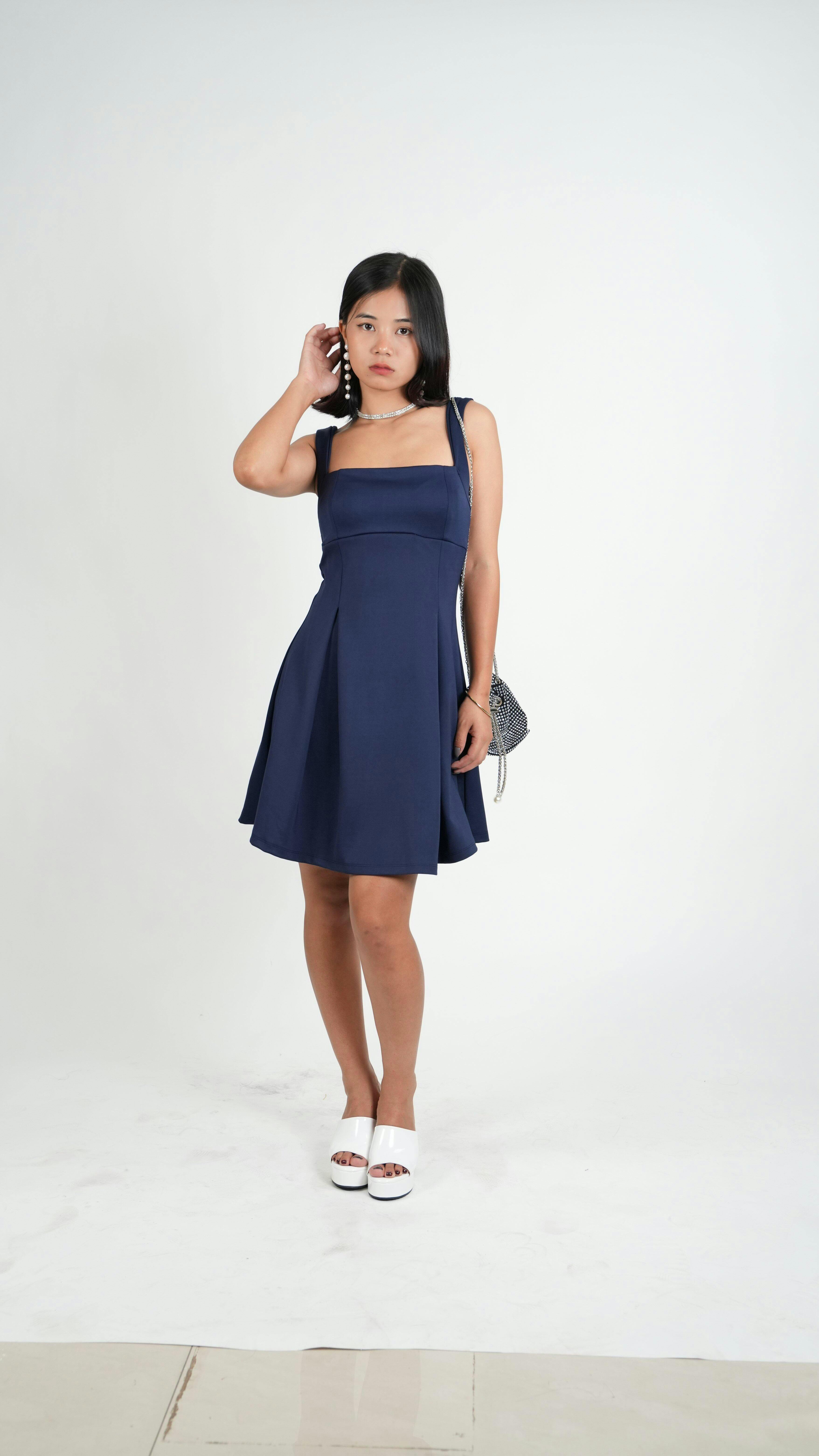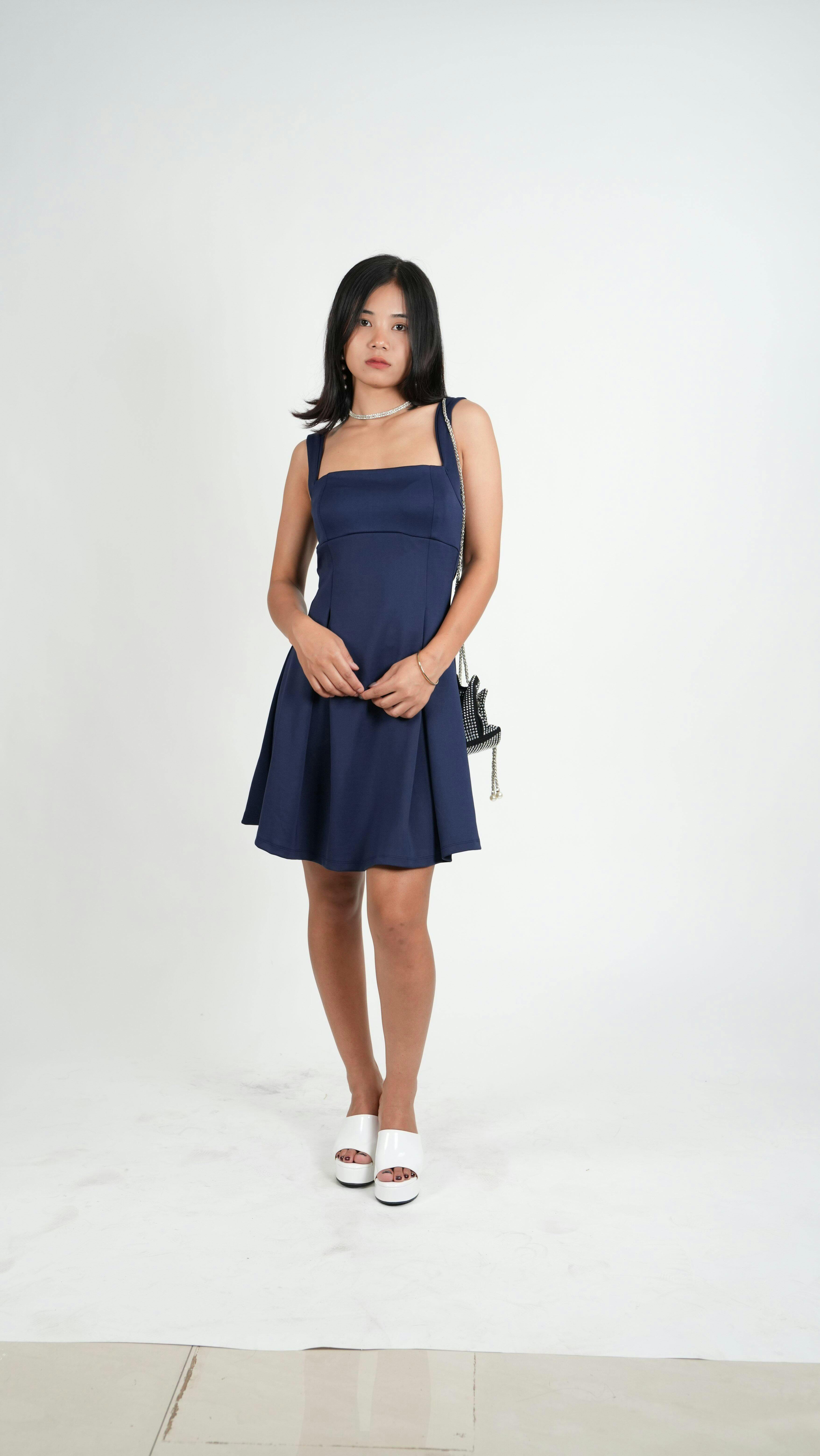 The Navy Blue Fit and Flare Sleeveless Mini Dress brings that perfect mix of cute and classy. With a flattering square neckline and structured flare, this flare sleeveless dress makes styling super simple.