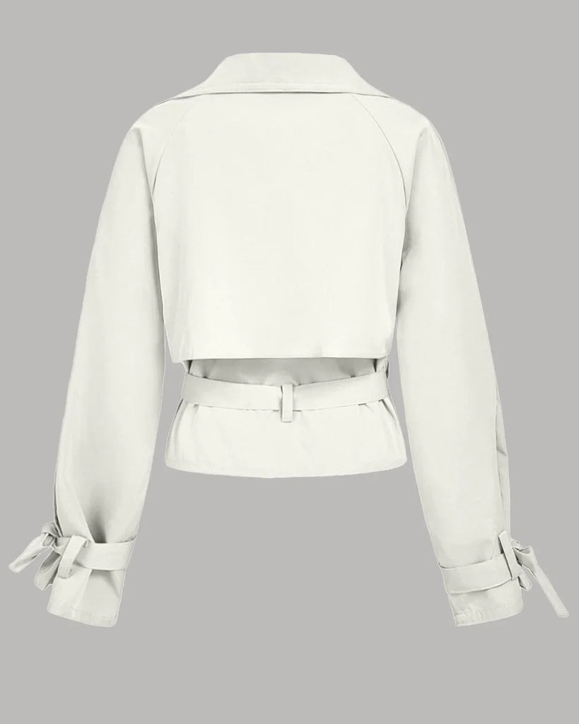 Belted Lapel Collar Cropped Waistcoat in Milky White