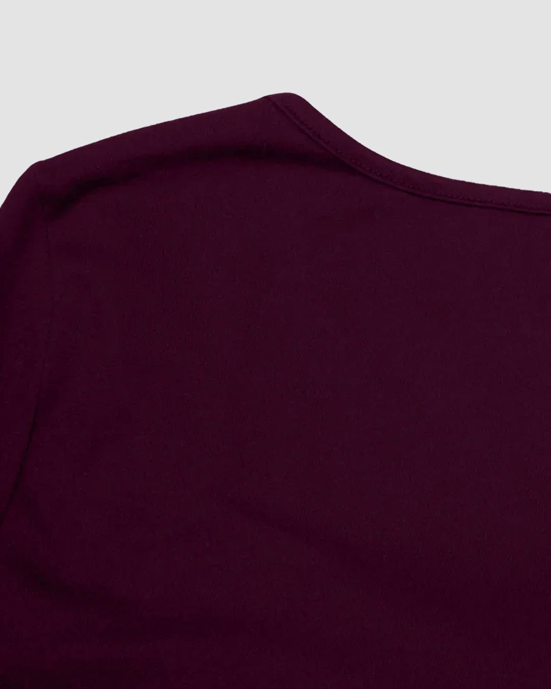 This boat neck in maroon adds a touch of understated glam to your wardrobe. Designed with a clean neckline and flattering ruched detailing, it hugs your curves softly while maintaining a sleek, minimal look. The rich maroon tone gives this boat neck in maroon a bold yet timeless appeal, perfect for layering or wearing solo. Crafted from a blend of polyester, viscose, and lycra, it offers the perfect balance of stretch and structure for all-day comfort.