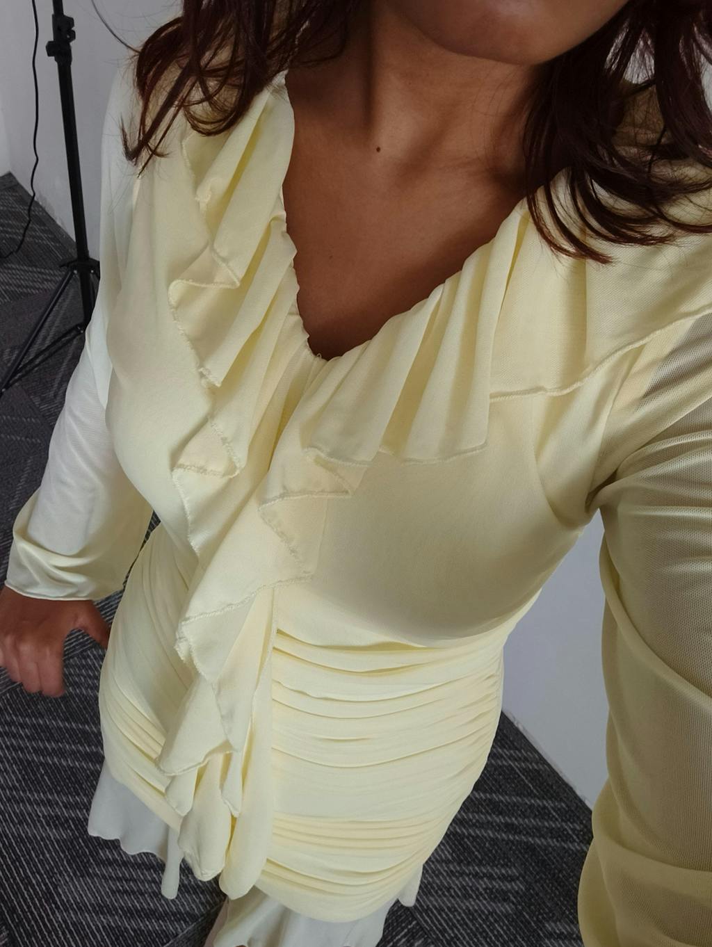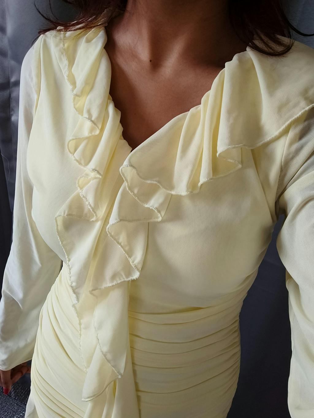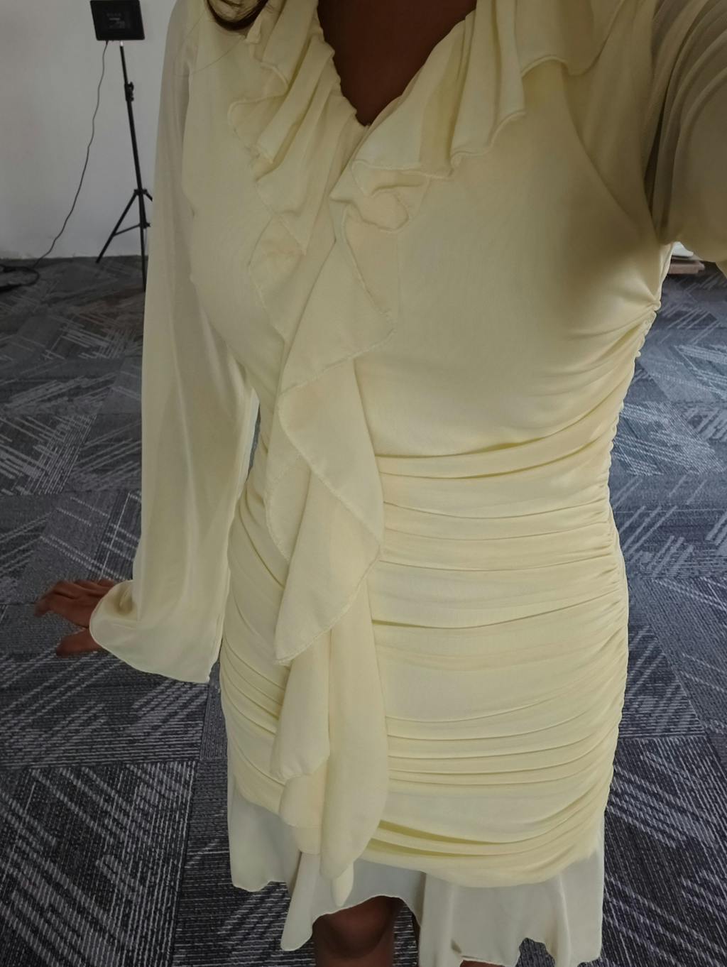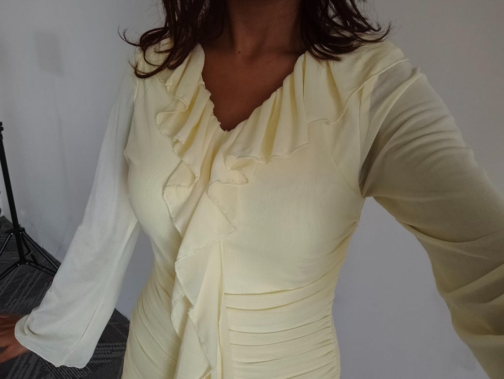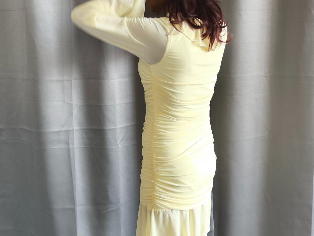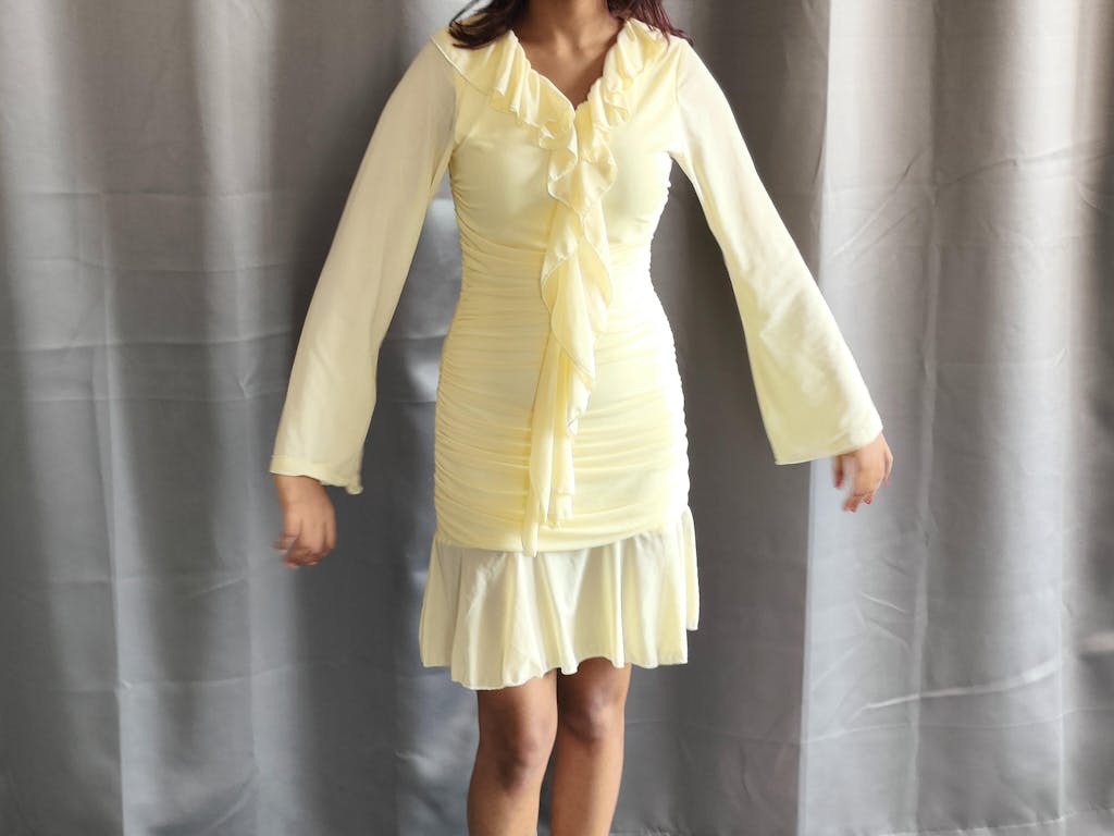 Long Sleeve Midi Dress Mini in French Vanilla brings a soft, elegant vibe with a clean, flattering fit. The gentle ruching along the body shapes the silhouette without feeling tight, while the flowy hem adds movement. The long sleeves balance the look, making it feel polished yet easy. The French vanilla shade keeps it fresh and light, perfect for days when you want something subtle but still eye-catching. This long sleeve mini dress feels smooth on the skin and sits comfortably through the day.