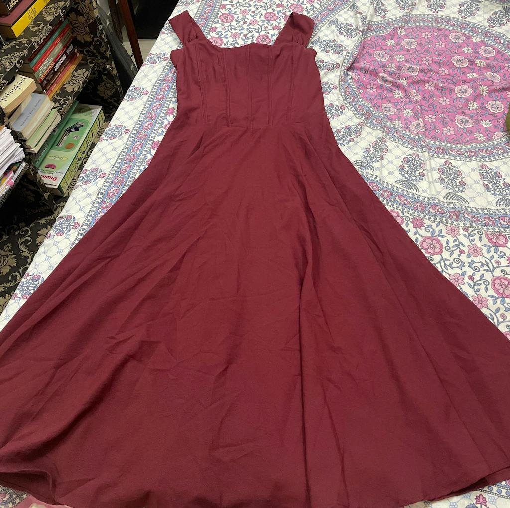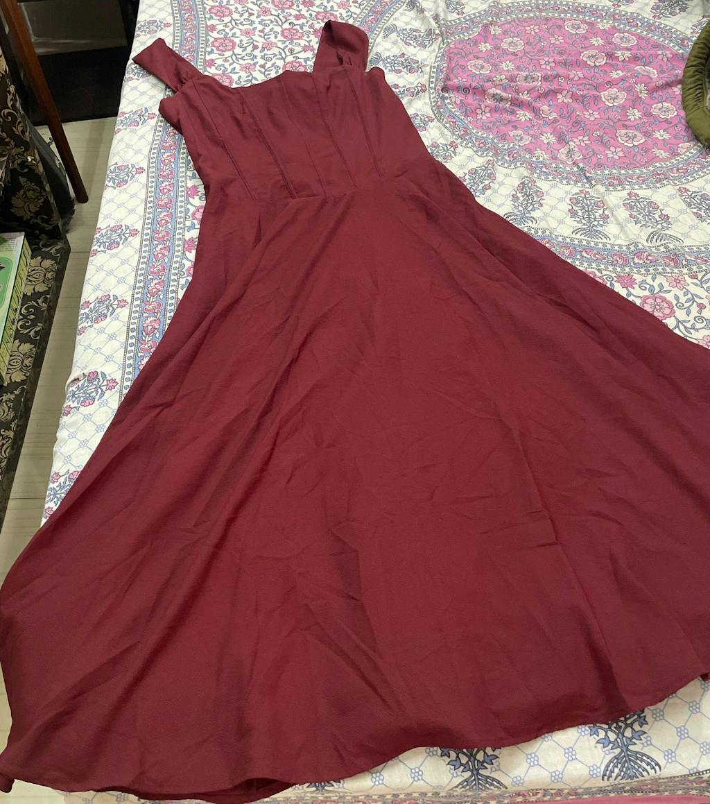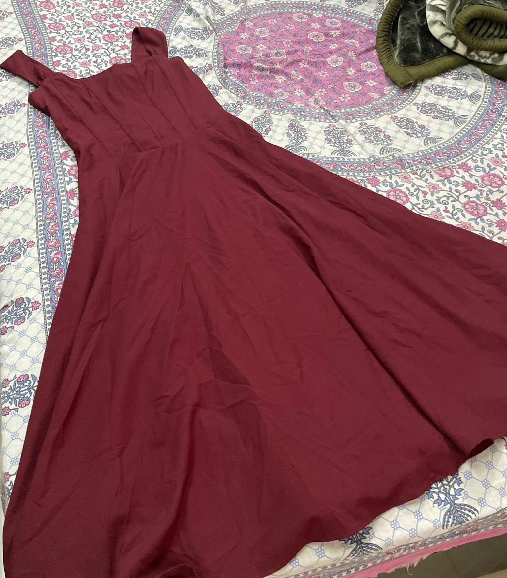 Introducing our Maroon Faux Fishbone Design Romantic One-Shoulder Dress. This one-shoulder dress is all about vintage drama with modern ease. Featuring a sculpted corset-inspired bodice and flared A-line hem, it hugs where it should and flows where it flatters.