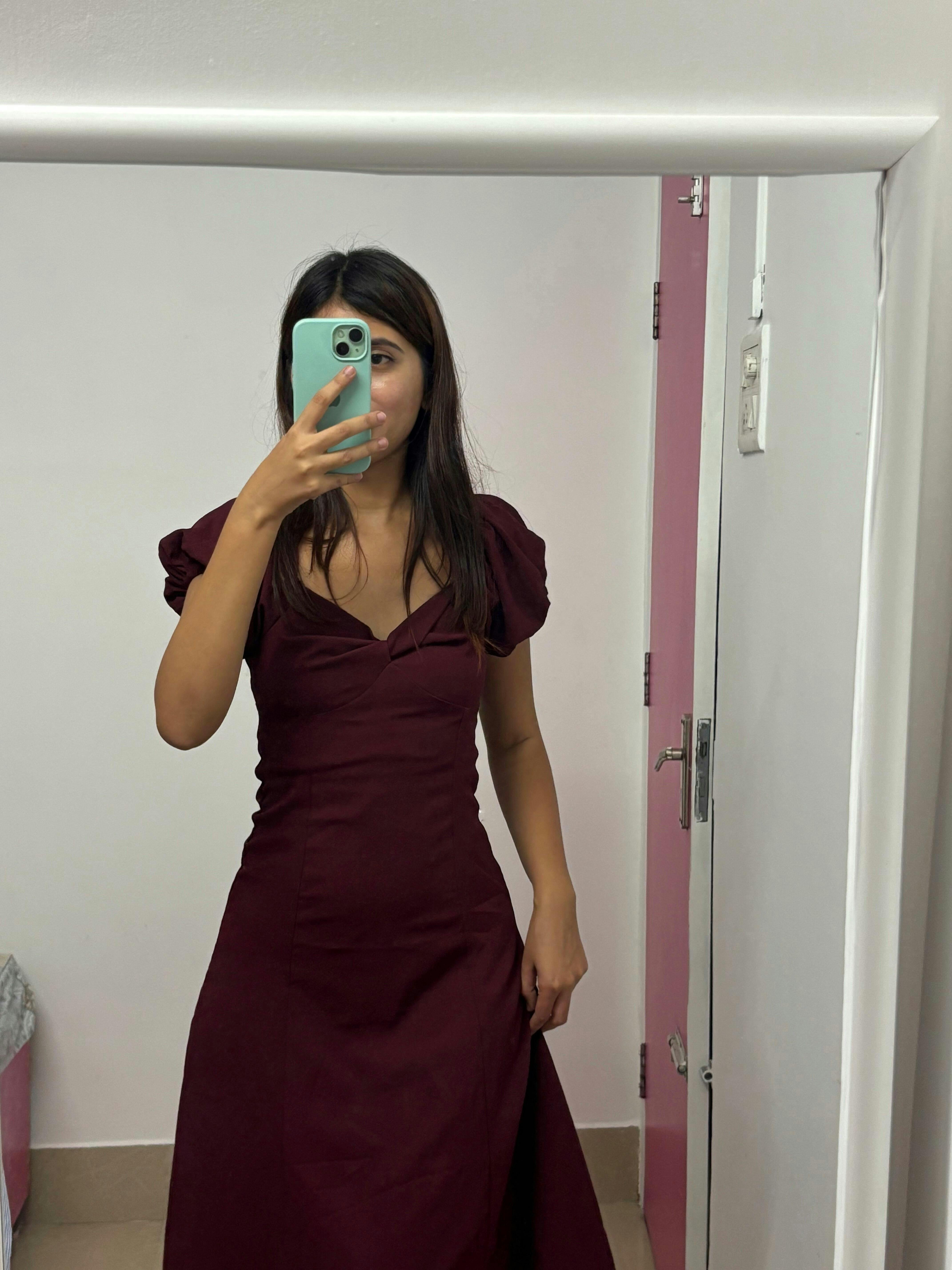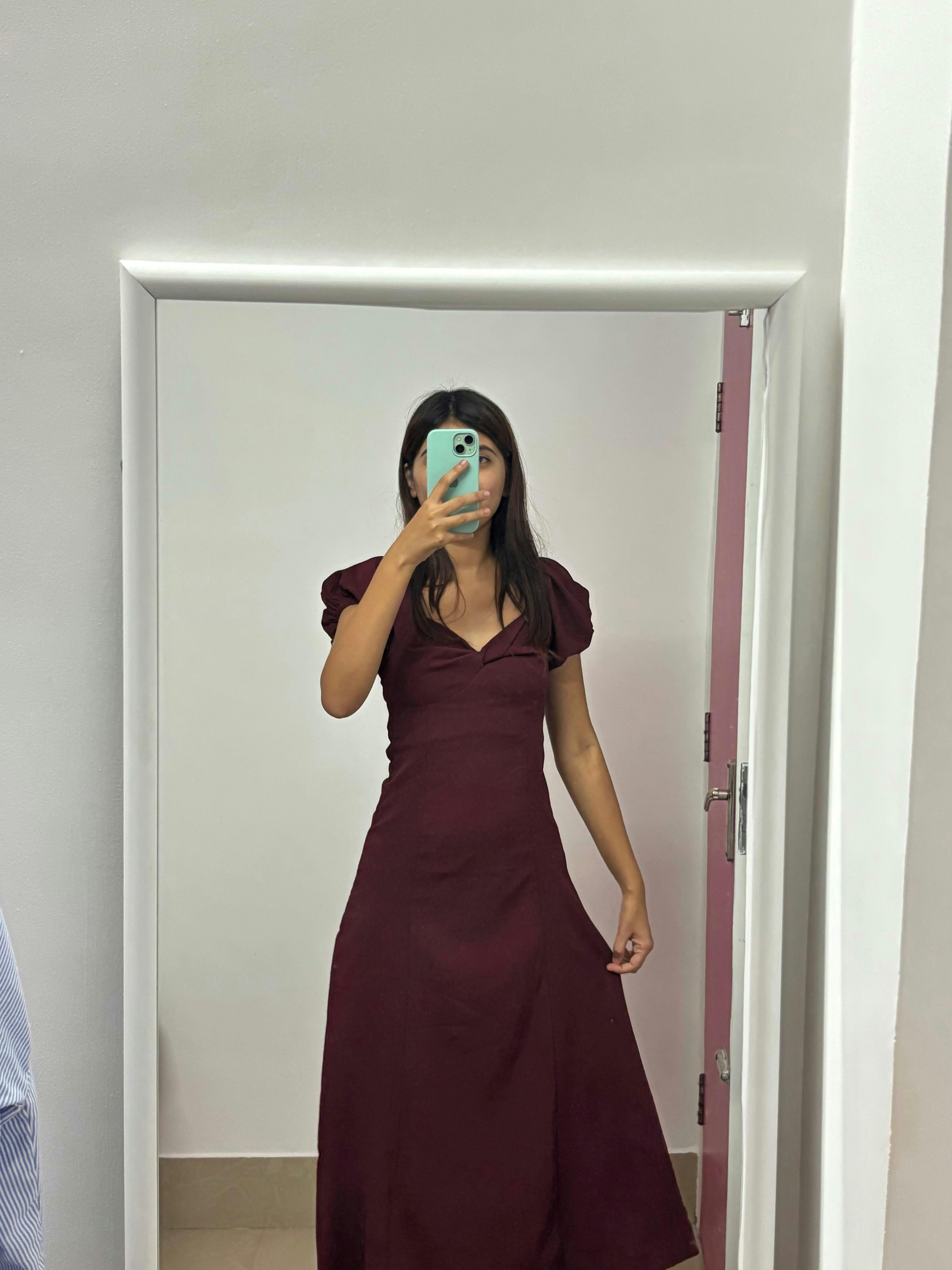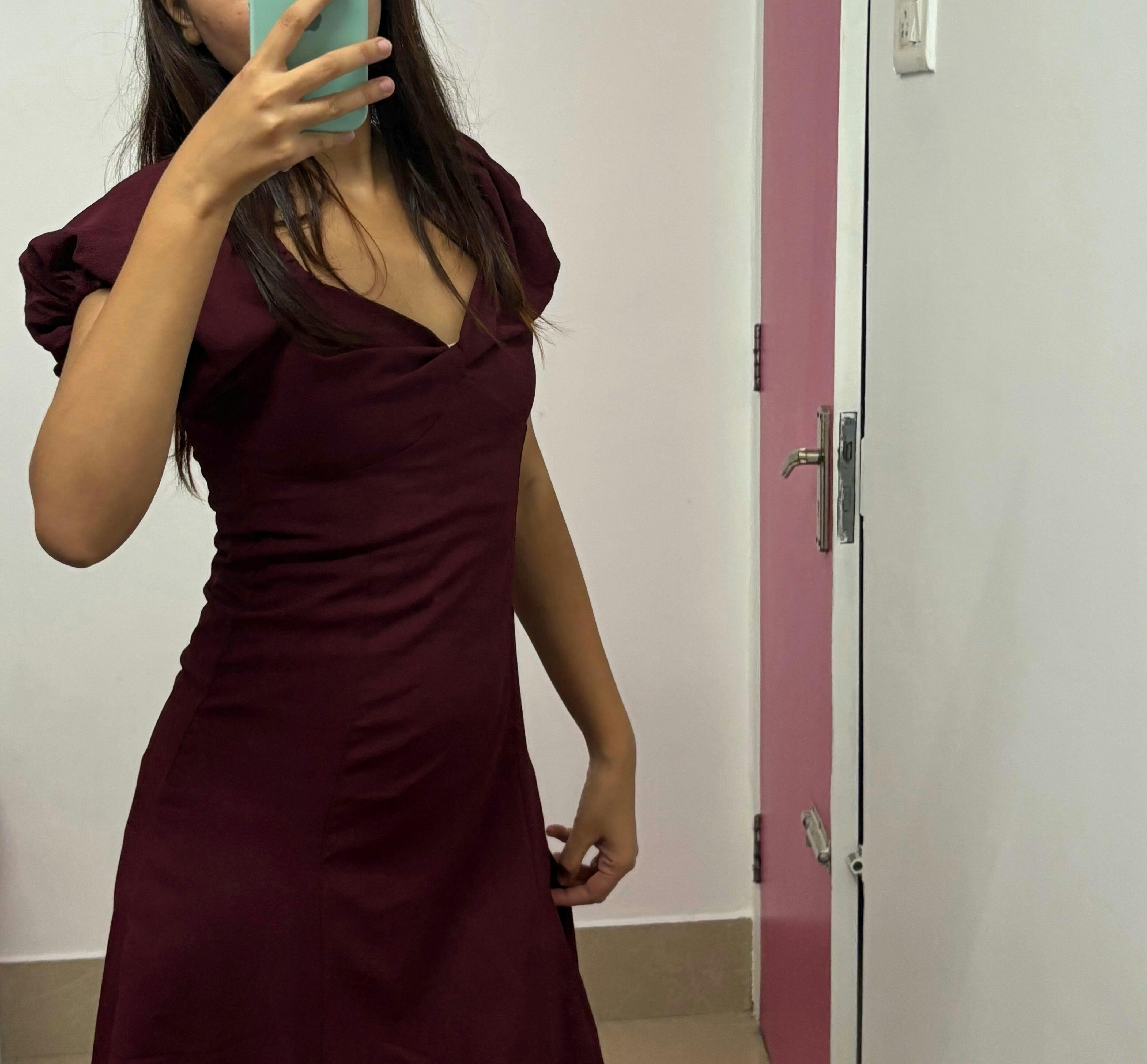 Absolutely love this dress 😍 The maroon color is so rich and the fabric feels super comfortable. Perfect for a dinner date- totally worth it.