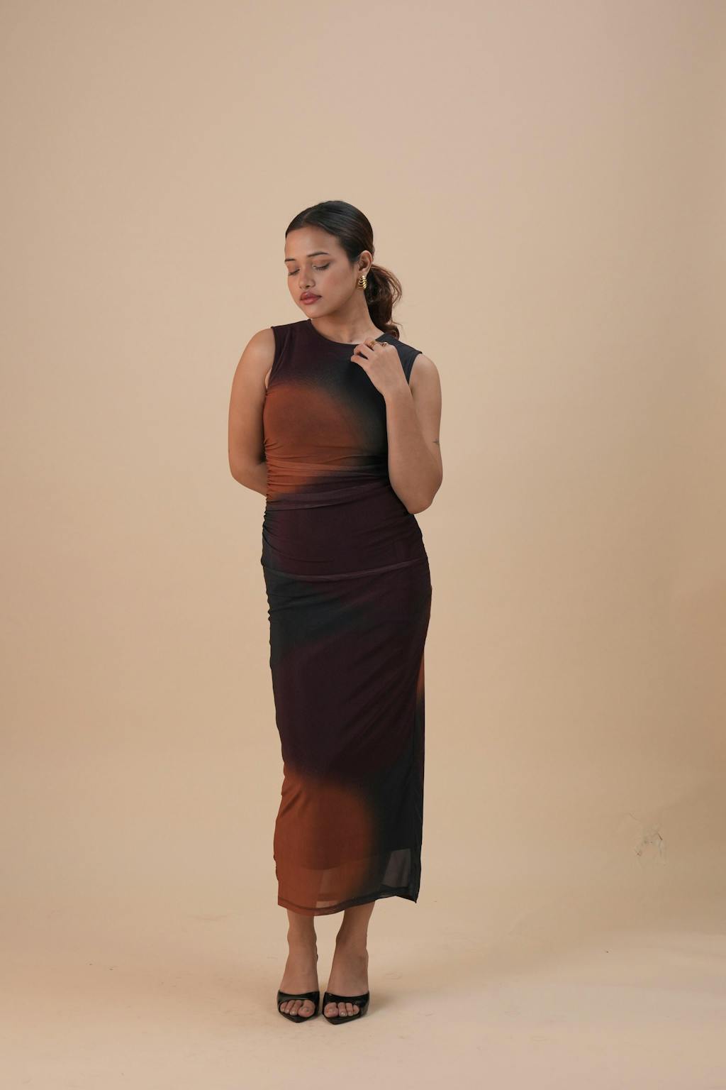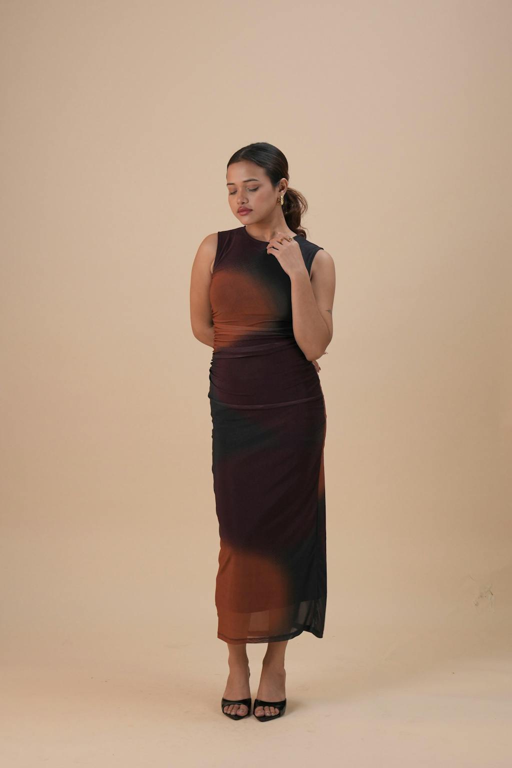 - Evening Look: Elevate with stilettos, a clutch, and statement earrings for a glamorous night-out appearance