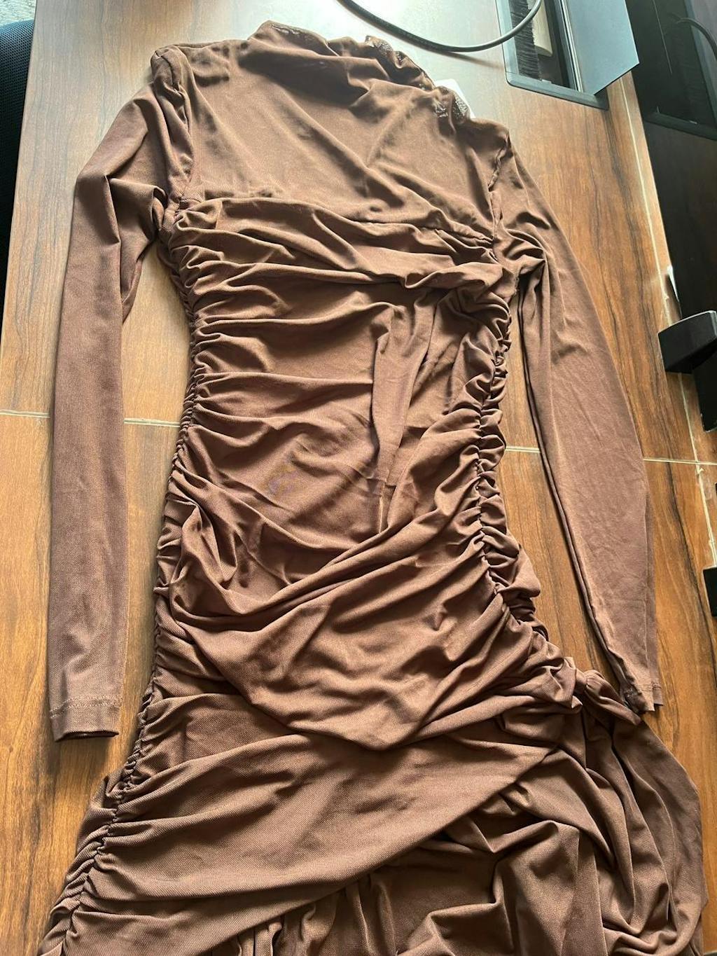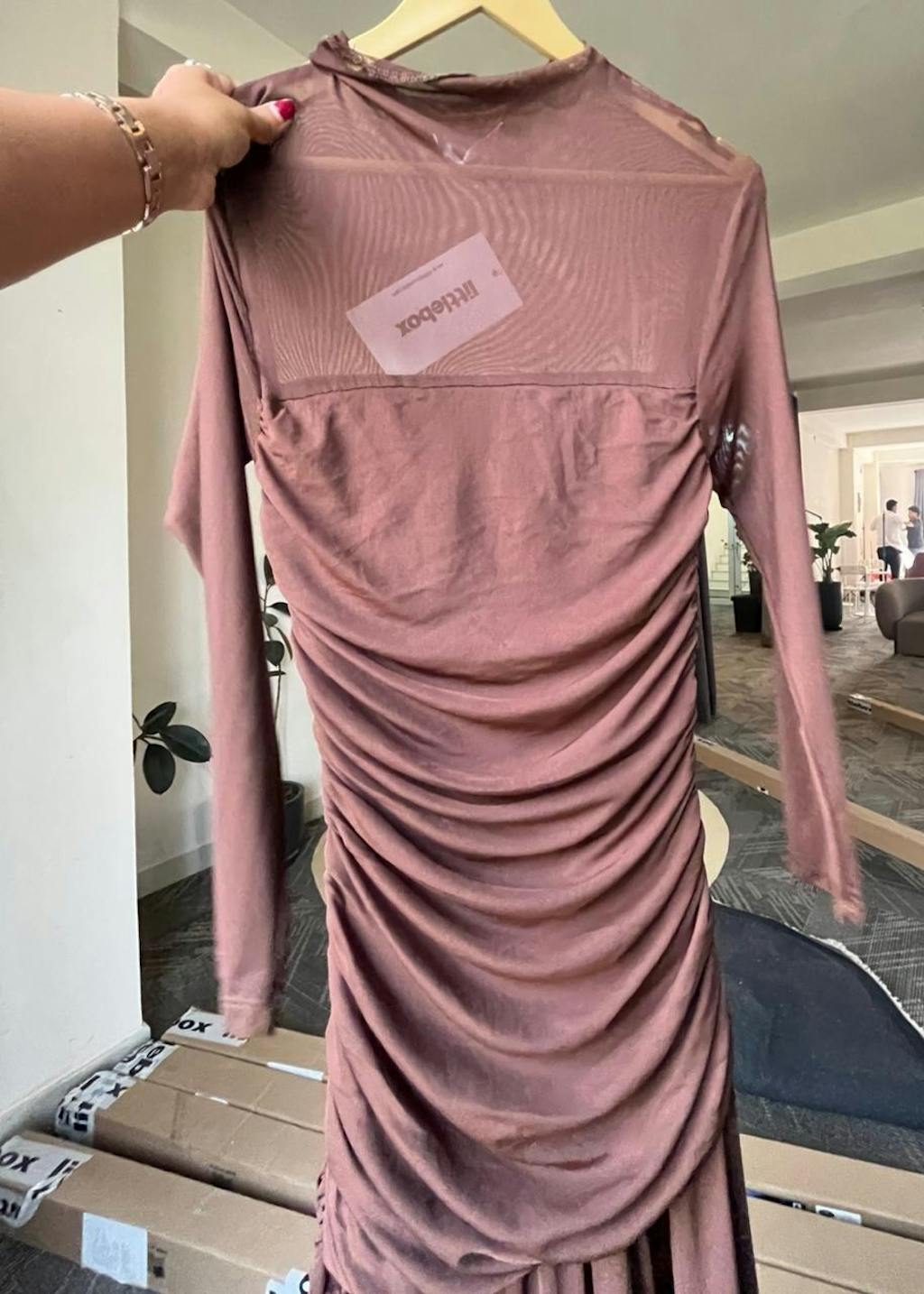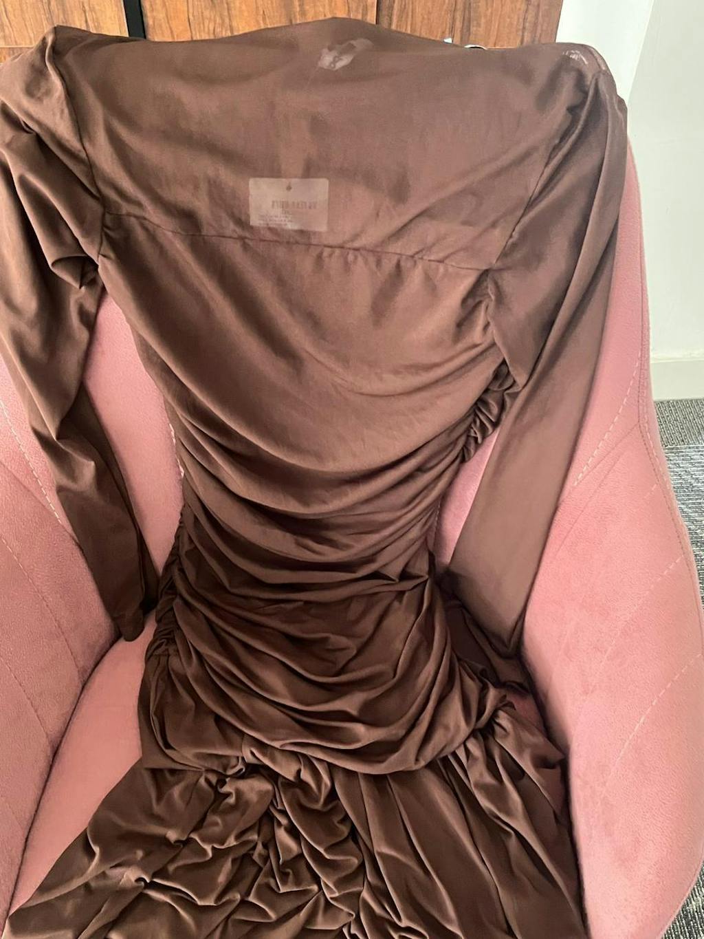 Ruched Full Sleeve Bodycon Midi Dress in Red