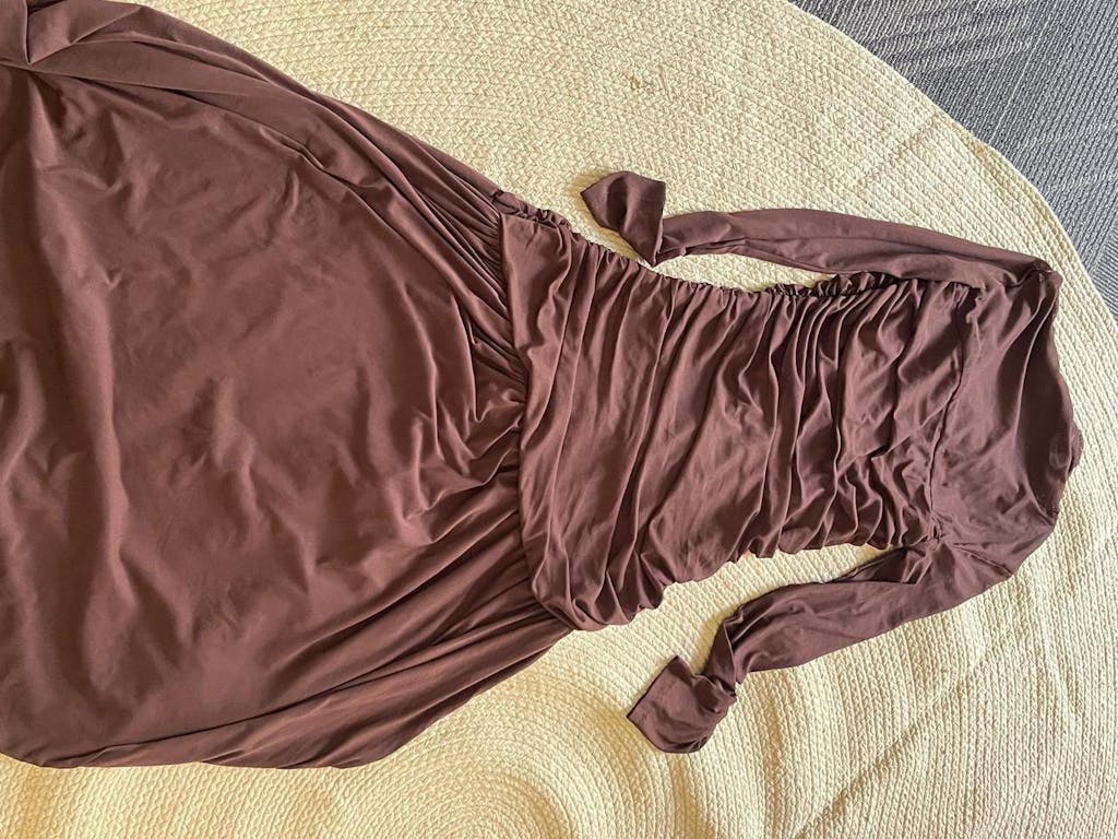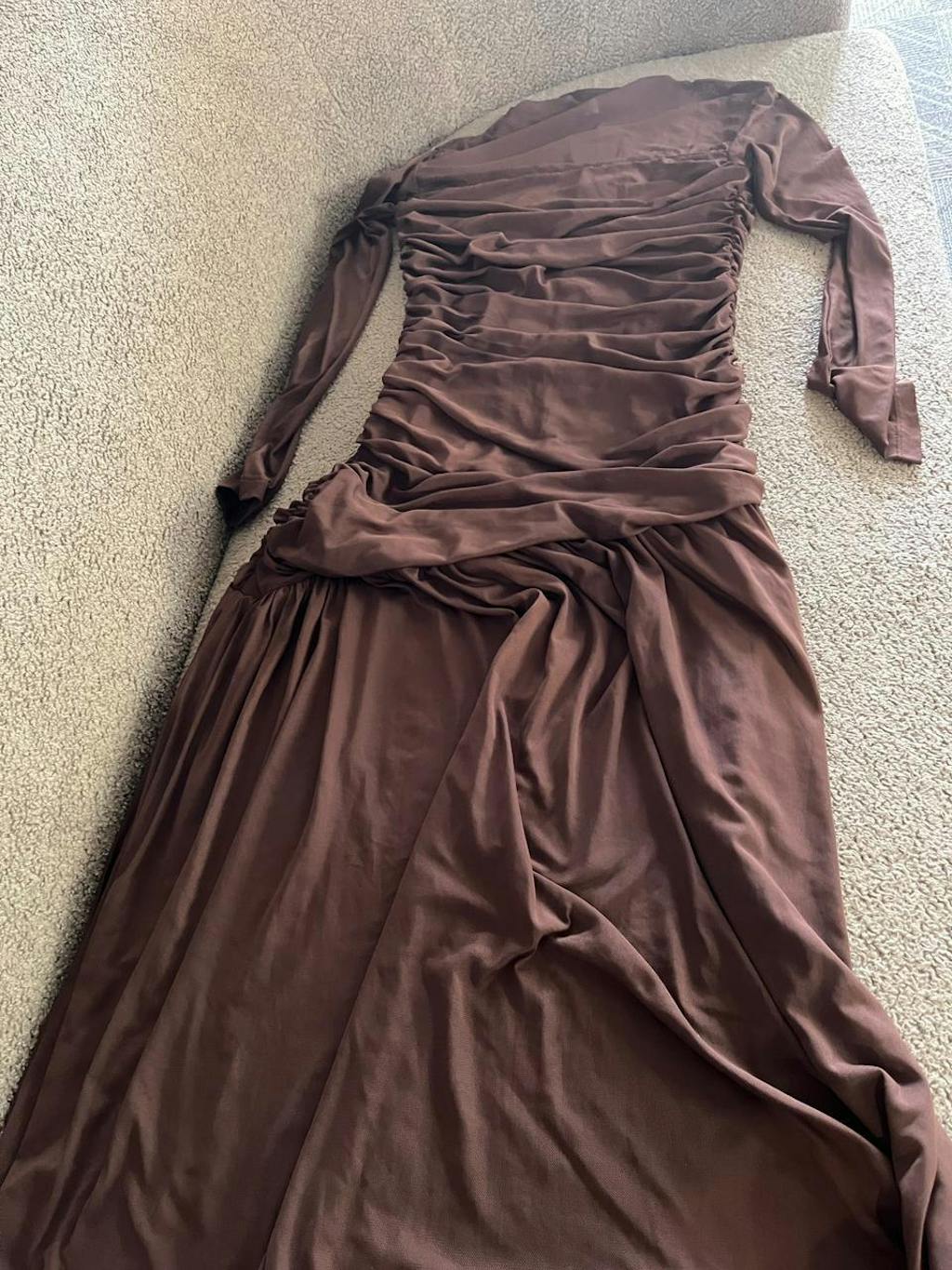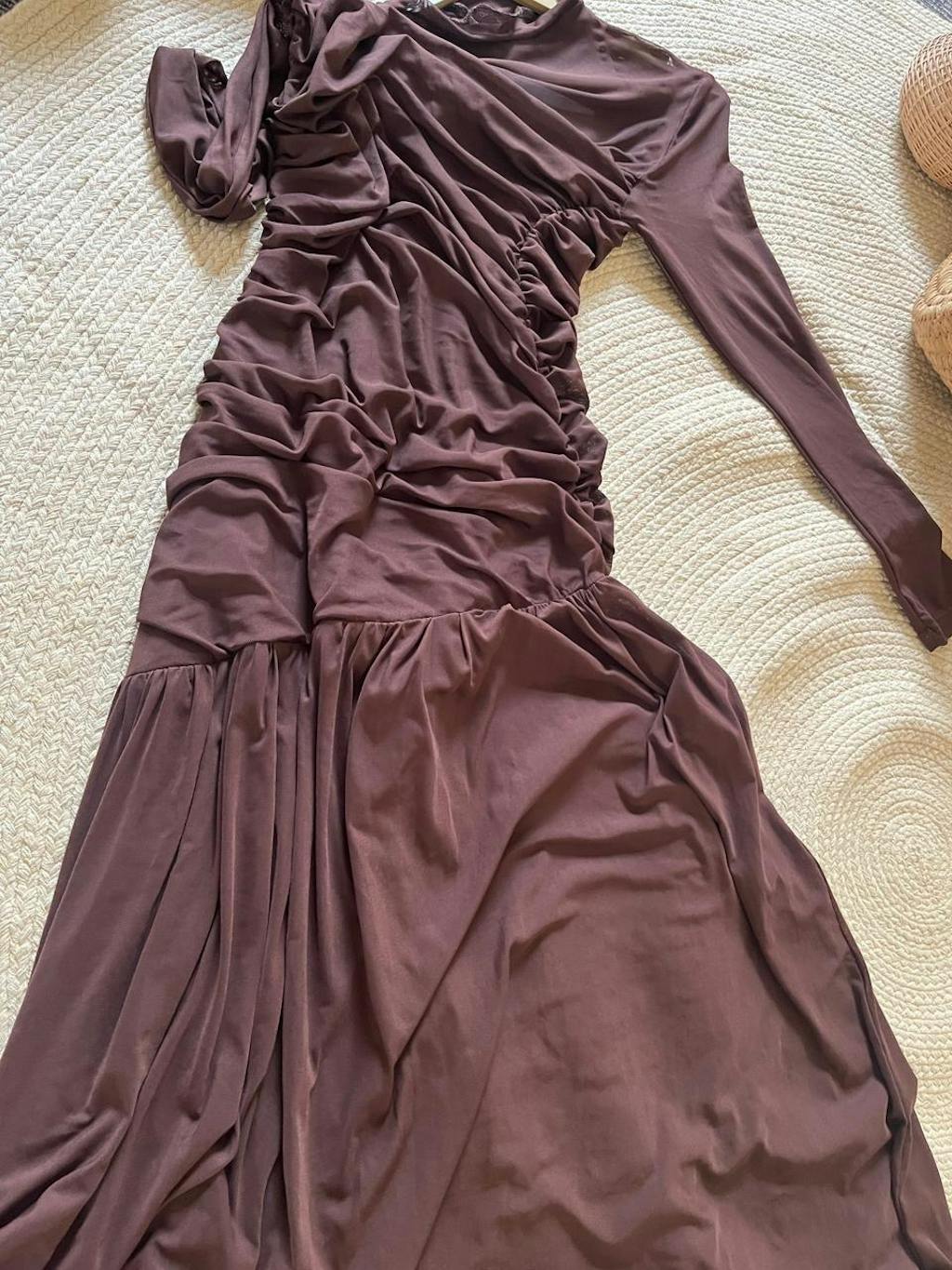 Ruched Full Sleeve Bodycon Midi Dress in Red