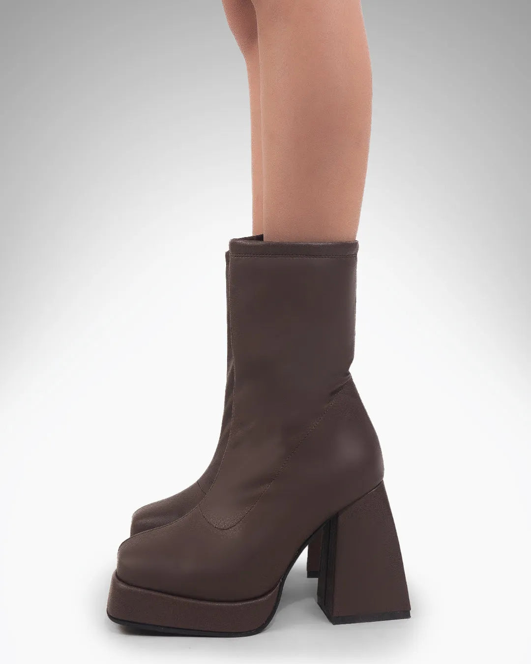Brown Ankle Boots with Chunky Platform Heel