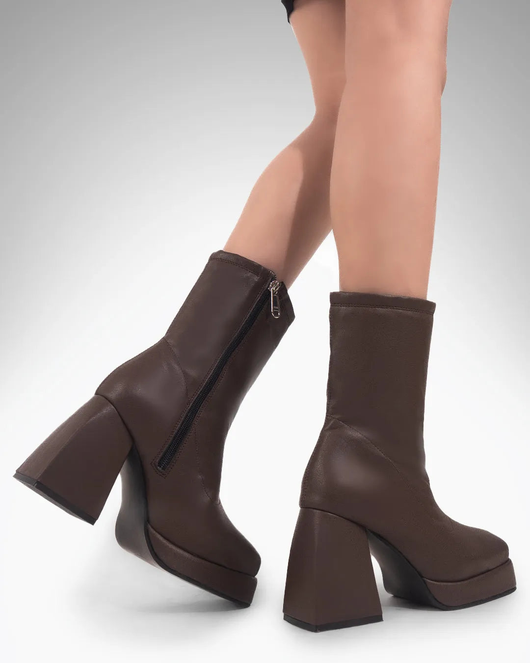 Brown Ankle Boots Round Toe Zip Casual Boots in Brown are made for everyday wear with a clean, confident look. Designed in a rich brown shade, these boots feature a chunky platform heel that adds height while keeping the base stable. The ankle-length silhouette feels modern and easy to style, while the side zip closure keeps wear quick and fuss-free. With a rounded toe and structured shape, these brown ankle boots offer a comfortable fit that works well for long days without feeling bulky.
