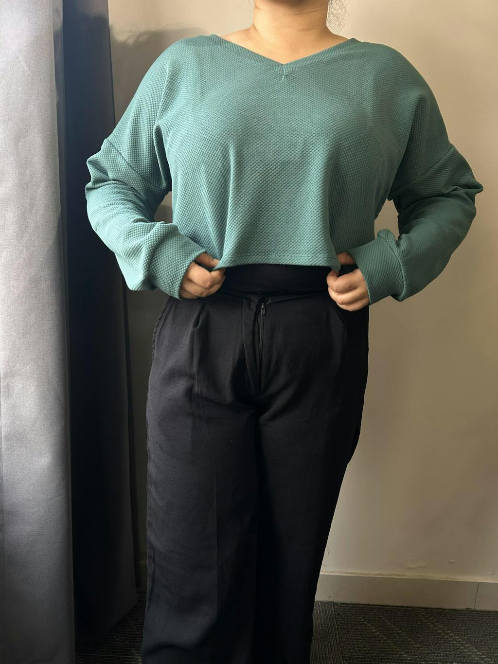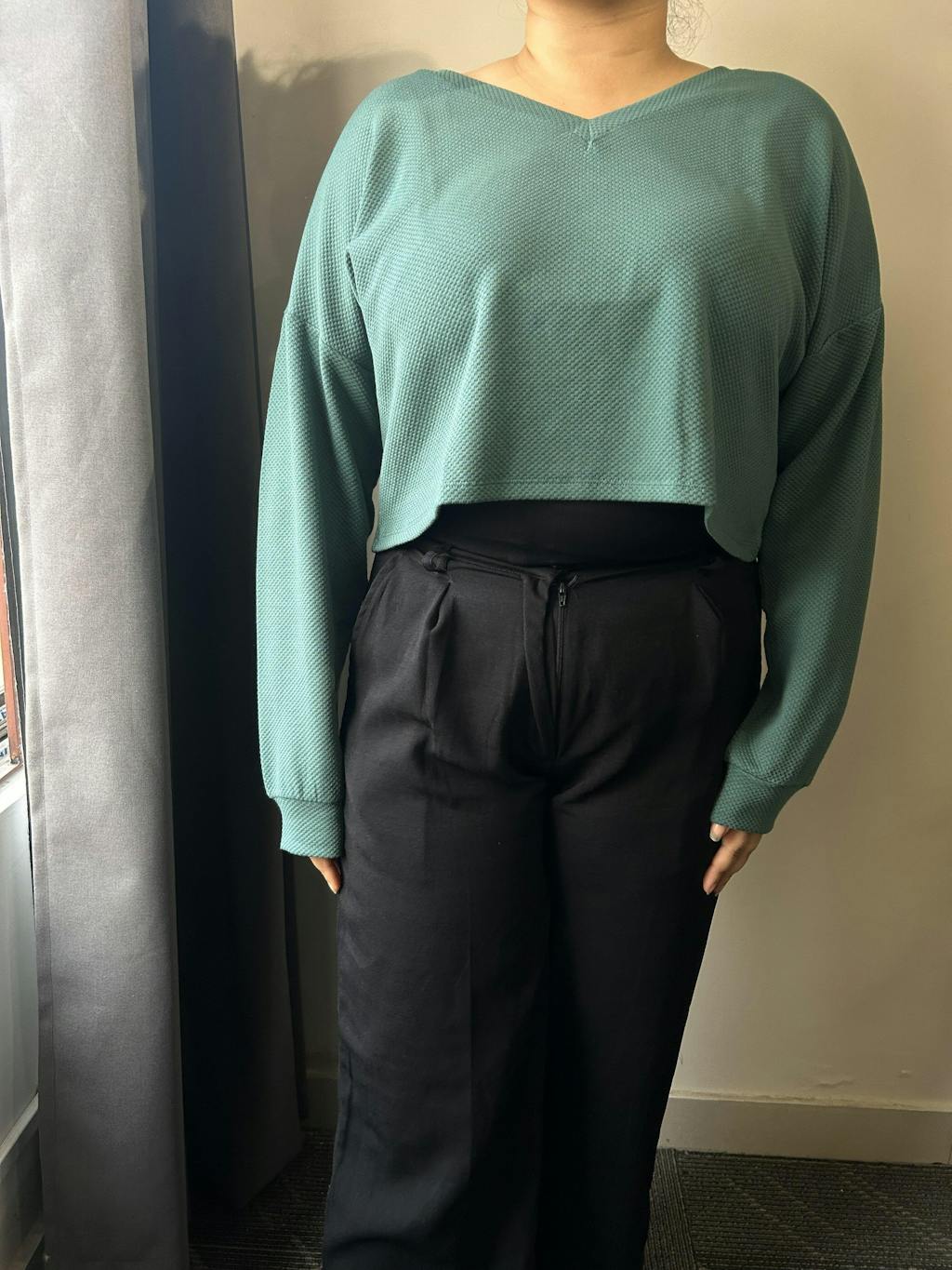 Ideal for casual outings, coffee runs, or relaxed weekends, this piece is easy to wear for long hours. The cropped length pairs naturally with high-waist jeans, trousers, or skirts, giving you multiple styling options without much effort. It moves easily with the body and keeps you comfortable throughout the day. If you love soft knits that feel current and effortless, this crop top sweater is one you will keep reaching for.