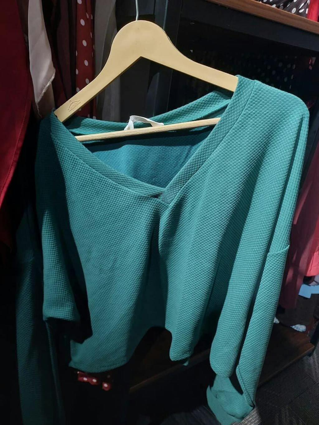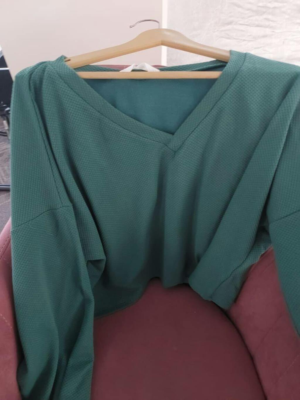 V-Neck Ribbed Long Sleeve Crop Top Sweater in Green
