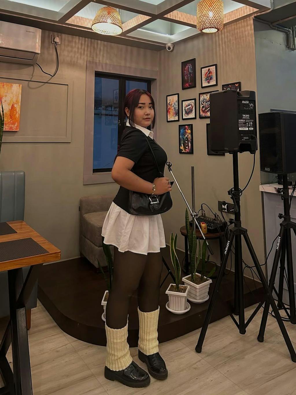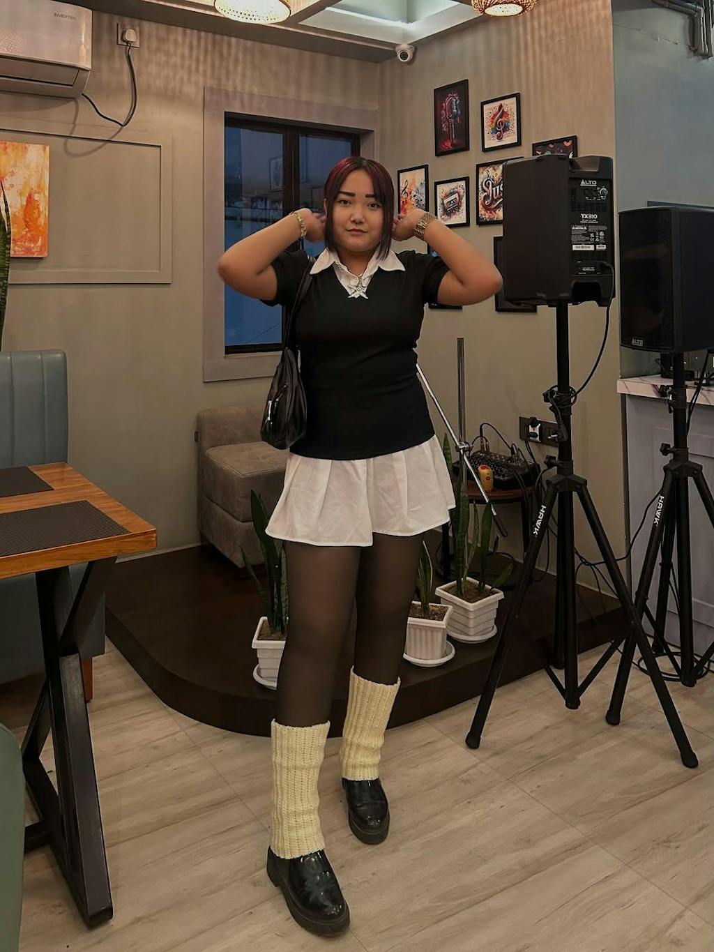Black Collared Top with White Pleated Skirt Dress