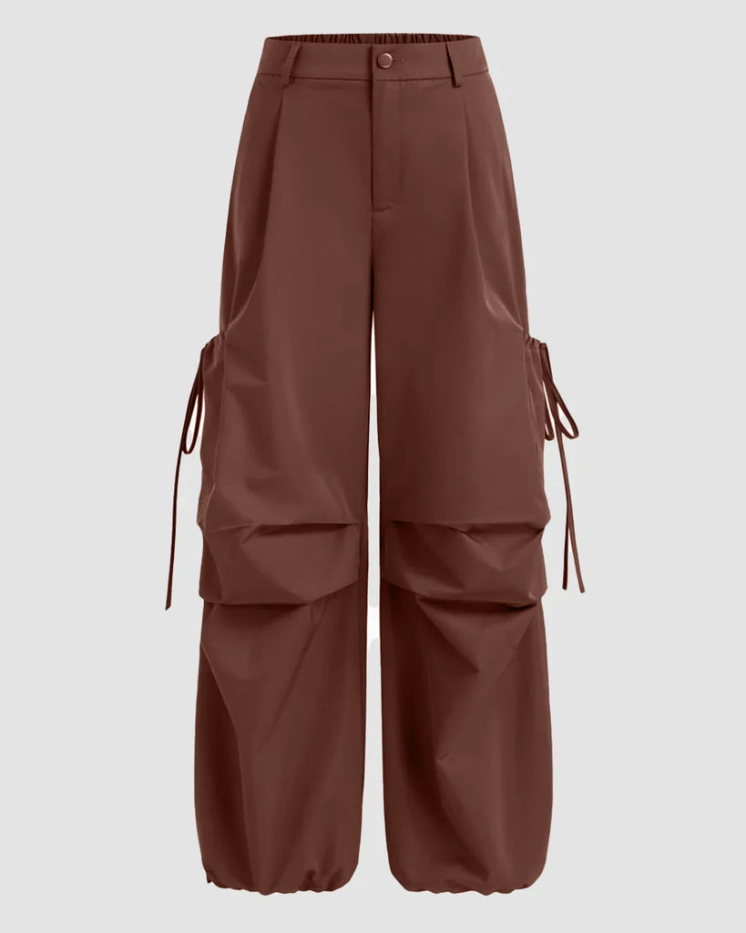 Solid Color Women Y2K Cargos In Brown