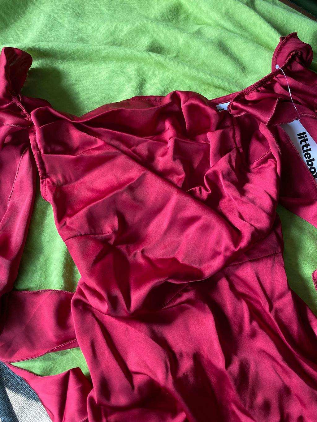 • A versatile cherry red dress that transitions from cocktails to formal evenings
