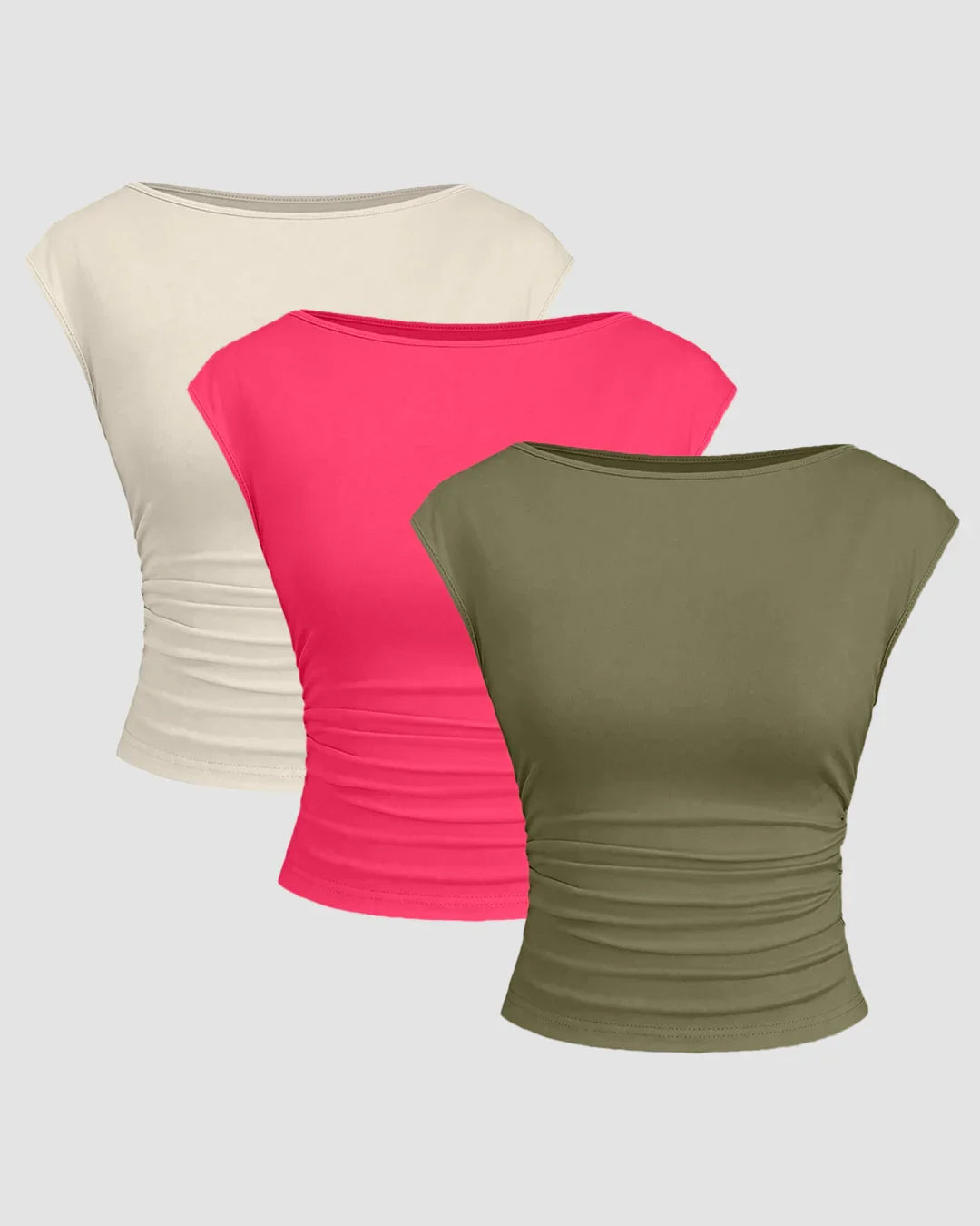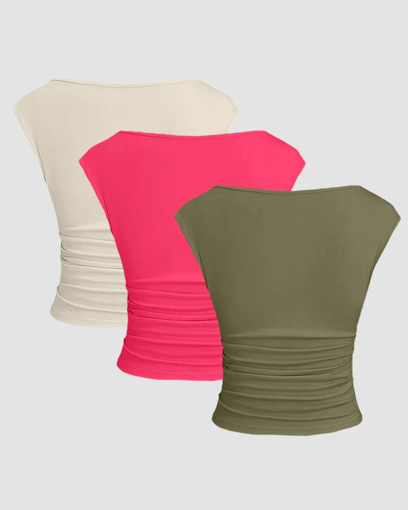 Combo of 3: Solid Ruched Tank Tops Combo in Apricot, Hot Pink & Avocado