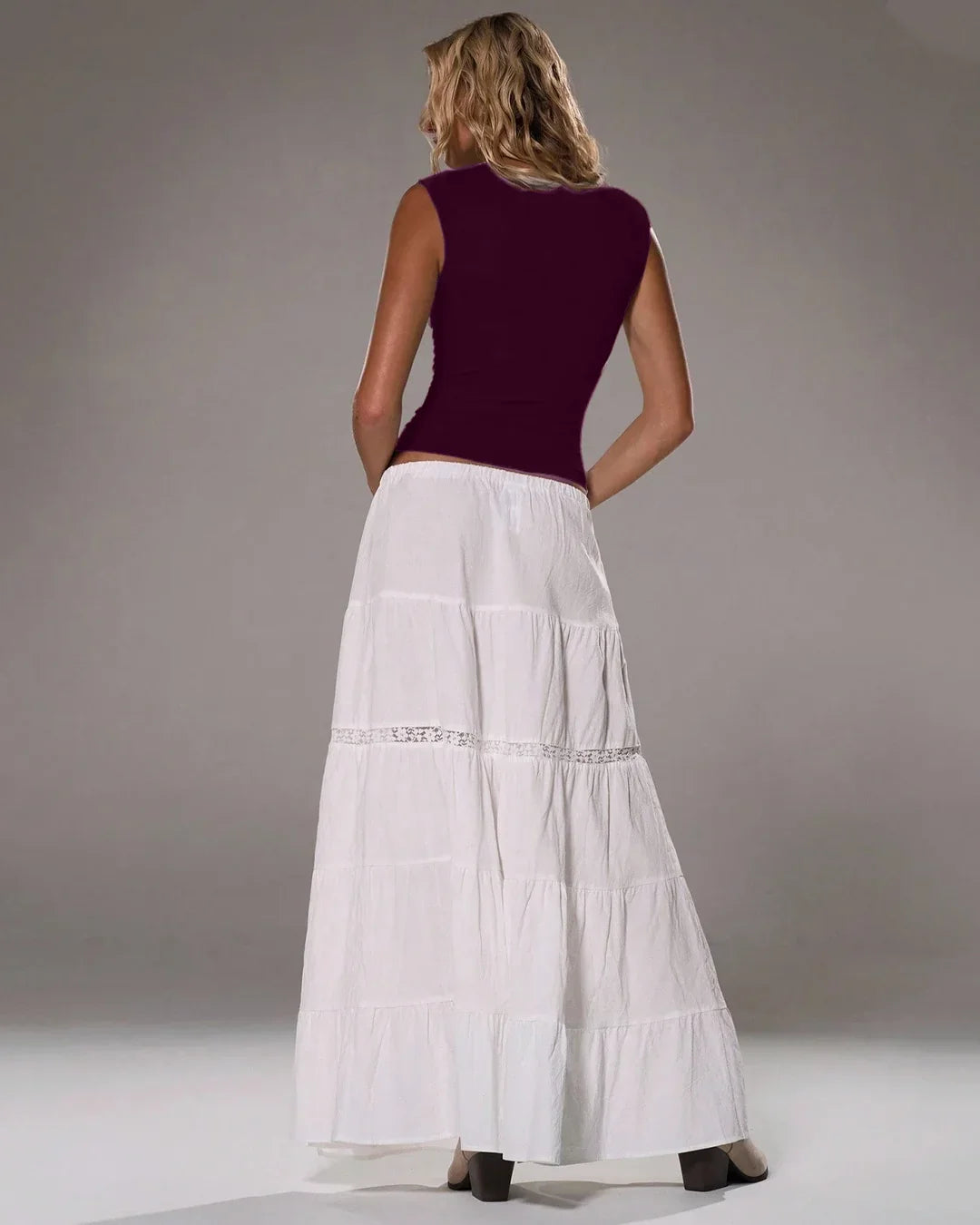 Evening look: Style with a satin midi skirt and heels for a flirty night-out look.