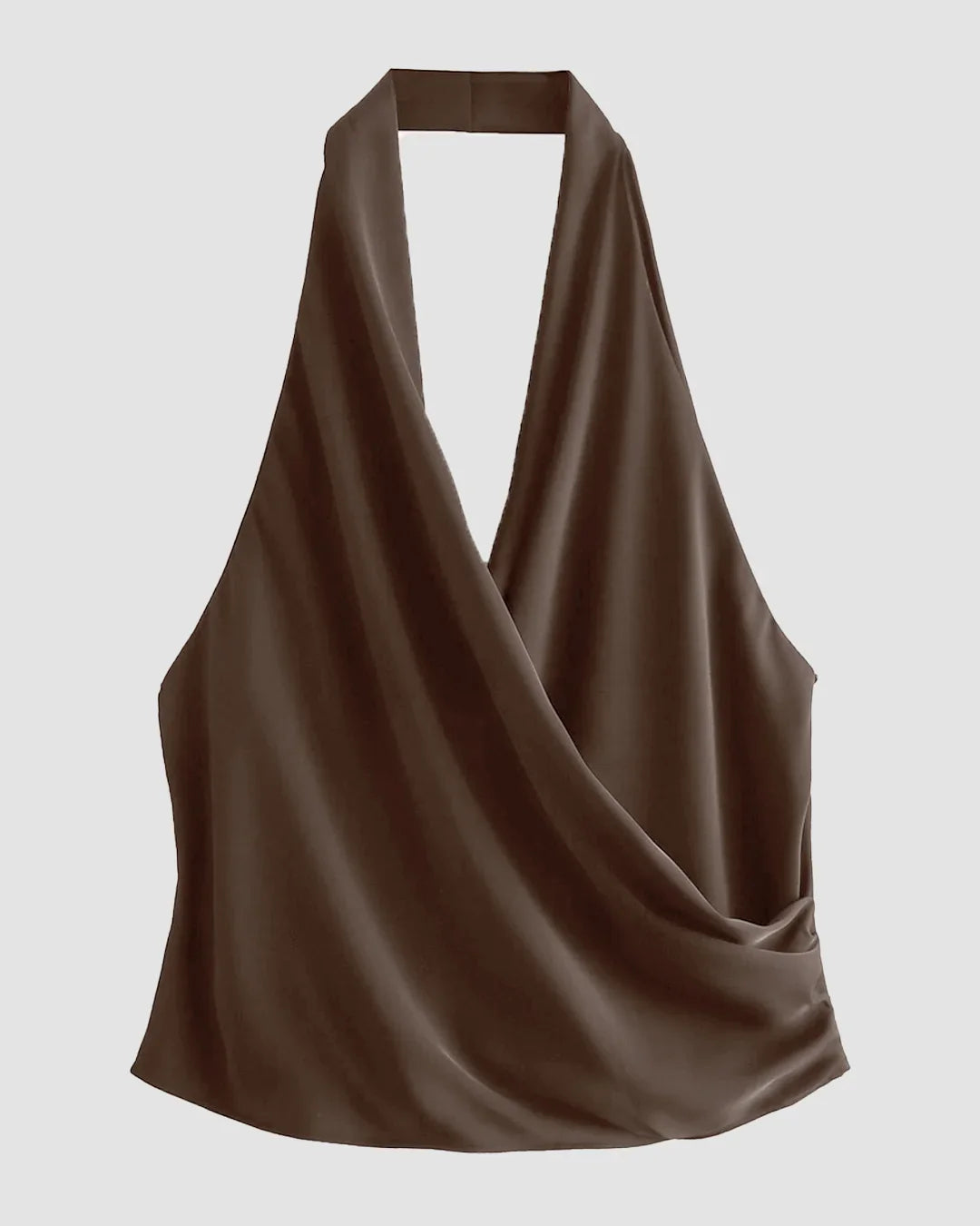 Draped Cowl Halter Neck Top in Xpresso