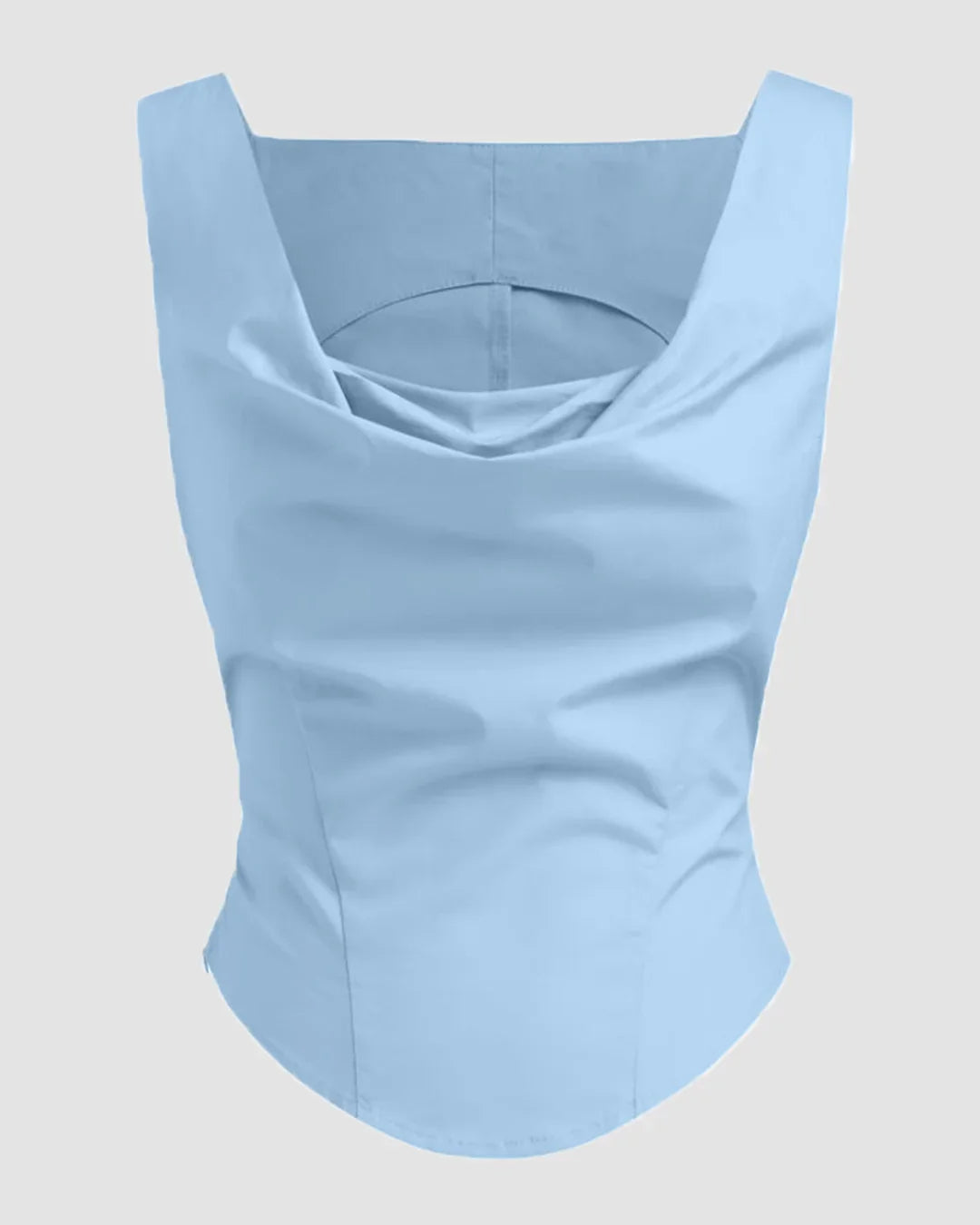 Draped Cowl Neck Sleeveless Top in Sky Blue