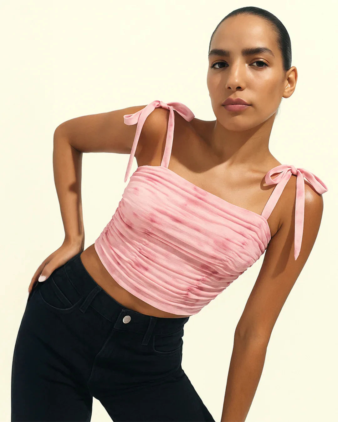 Whether you’re heading to a day event or layering up for an evening hangout, this ruched crop cami top will serve you that soft glam moment without trying too hard.