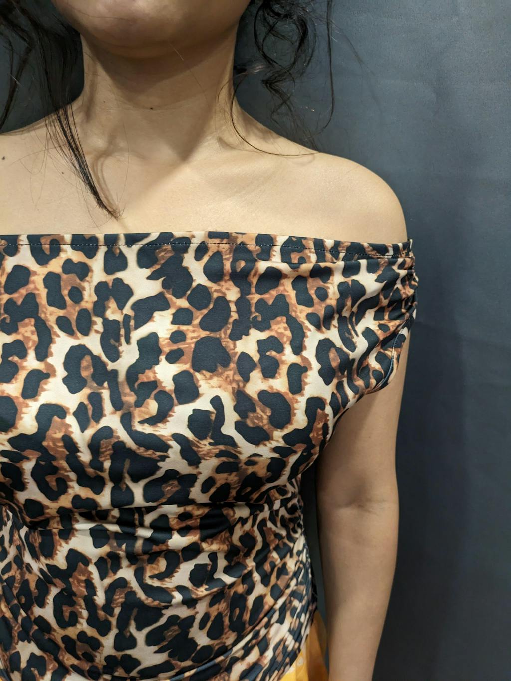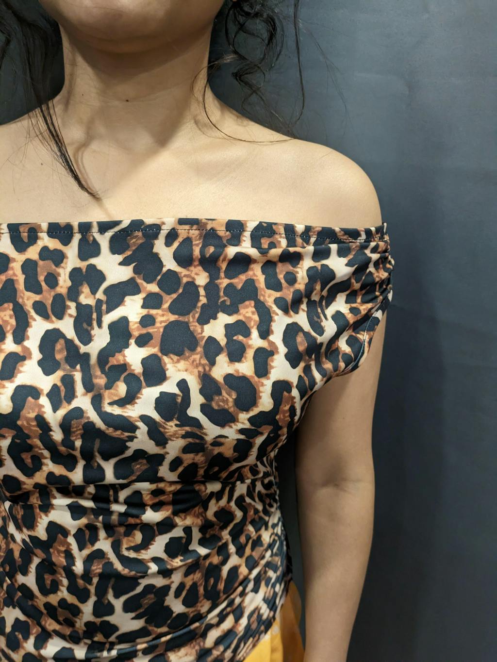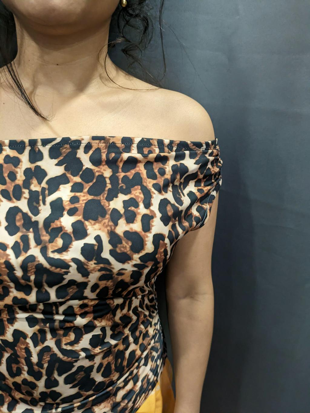 Off-Shoulder Leopard Print Fitted Stylish Draped Design Top