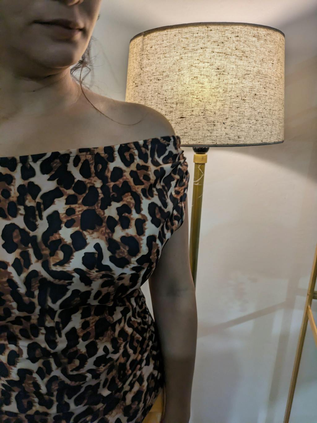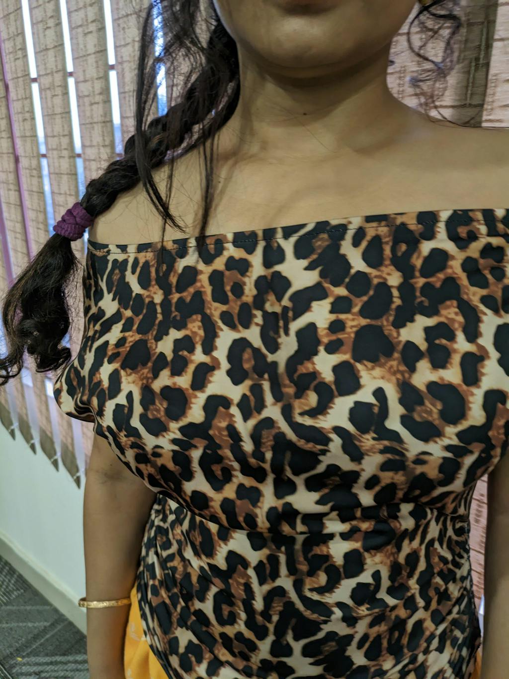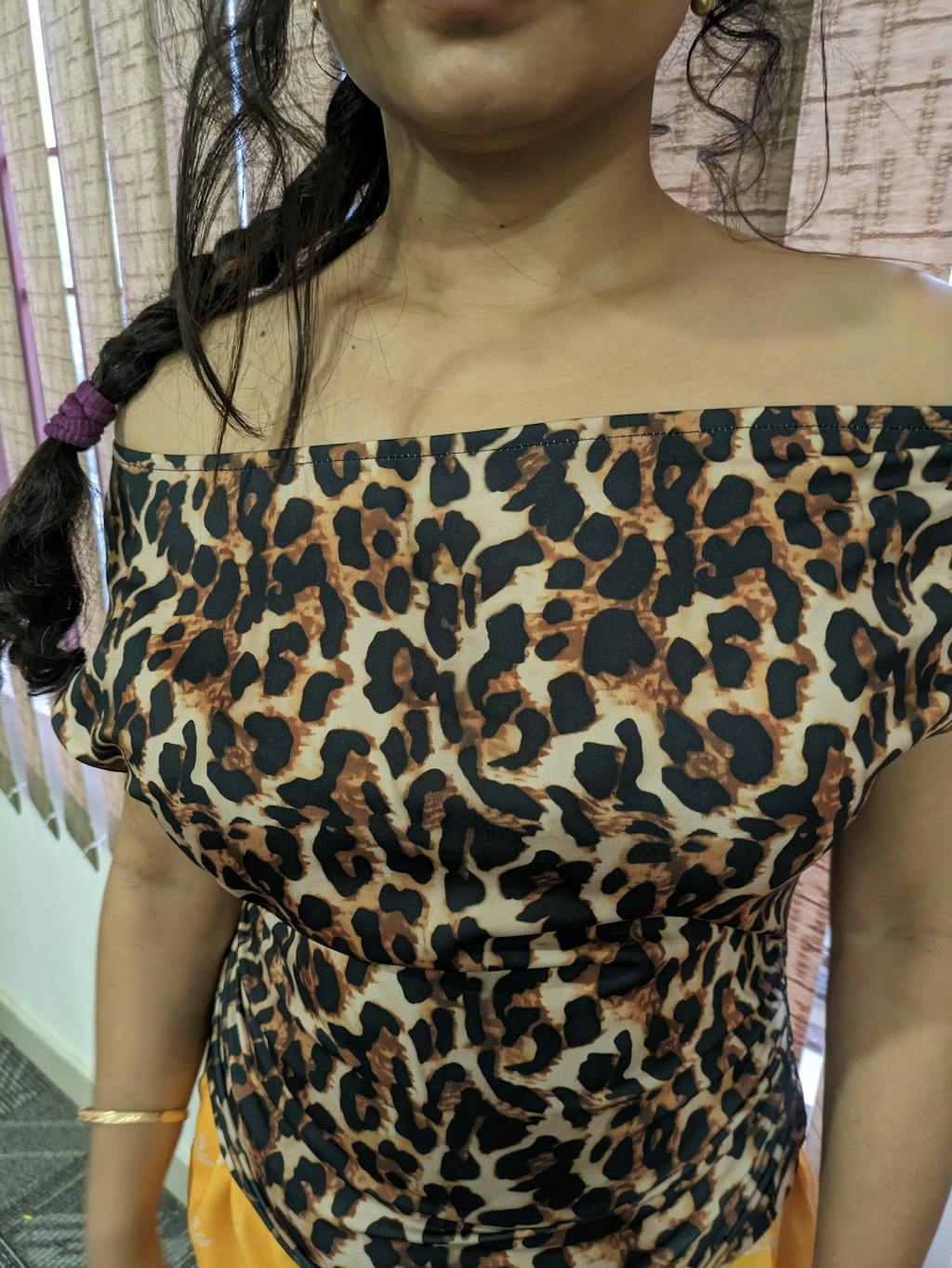 Off-Shoulder Leopard Print Fitted Stylish Draped Design Top