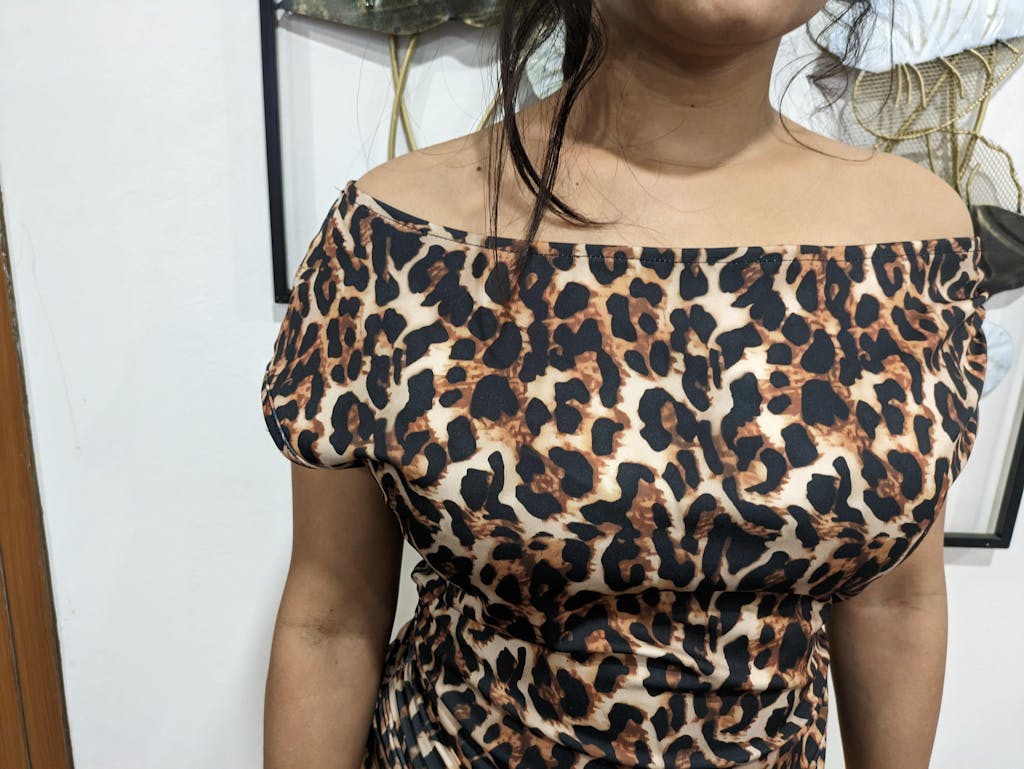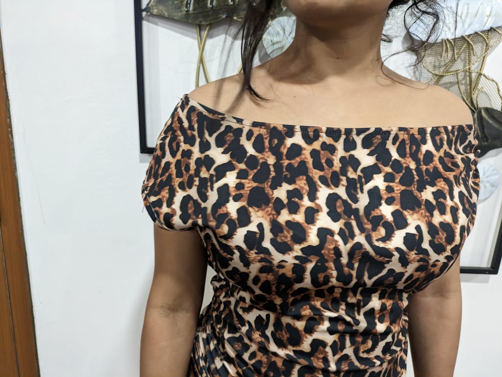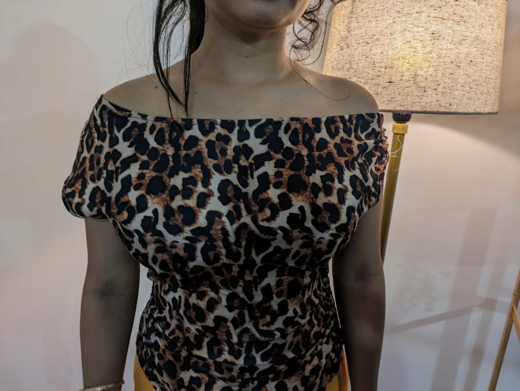 This off one shoulder top brings bold attitude with a sleek, body-hugging fit. The asymmetrical neckline highlights one shoulder, creating a confident and modern silhouette. The leopard-inspired print adds instant edge, while the fitted shape enhances your natural curves. This off one shoulder top blends statement styling with effortless wearability, making it perfect for standout looks.