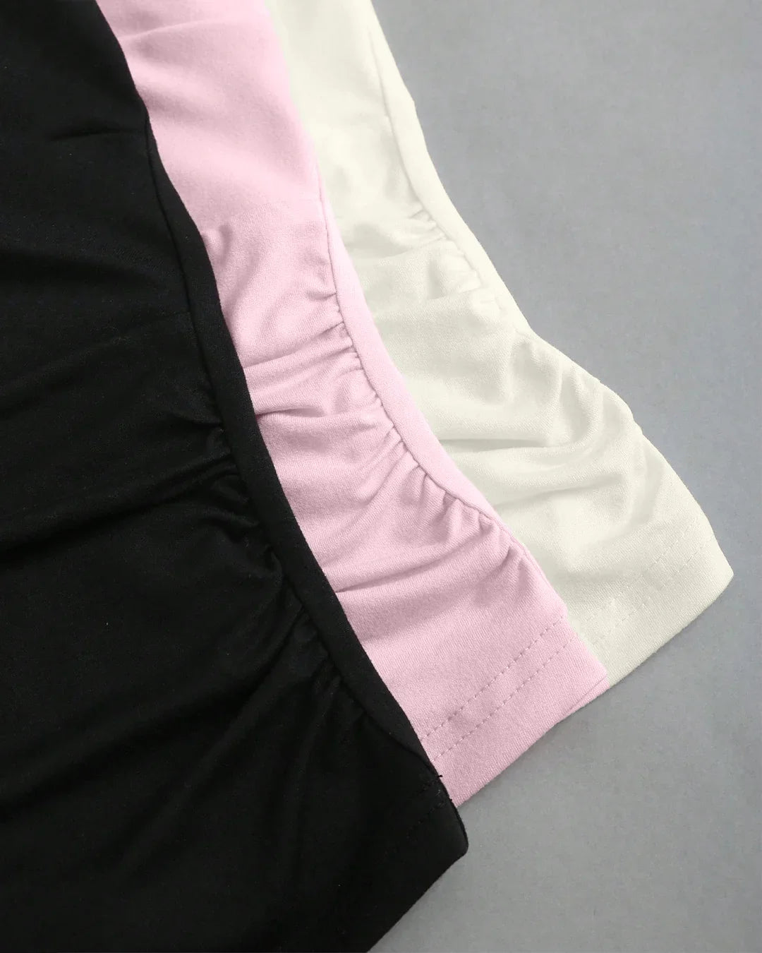 Ruched Halter Neck Combo Tops in Milky White, Black & Baby Pink