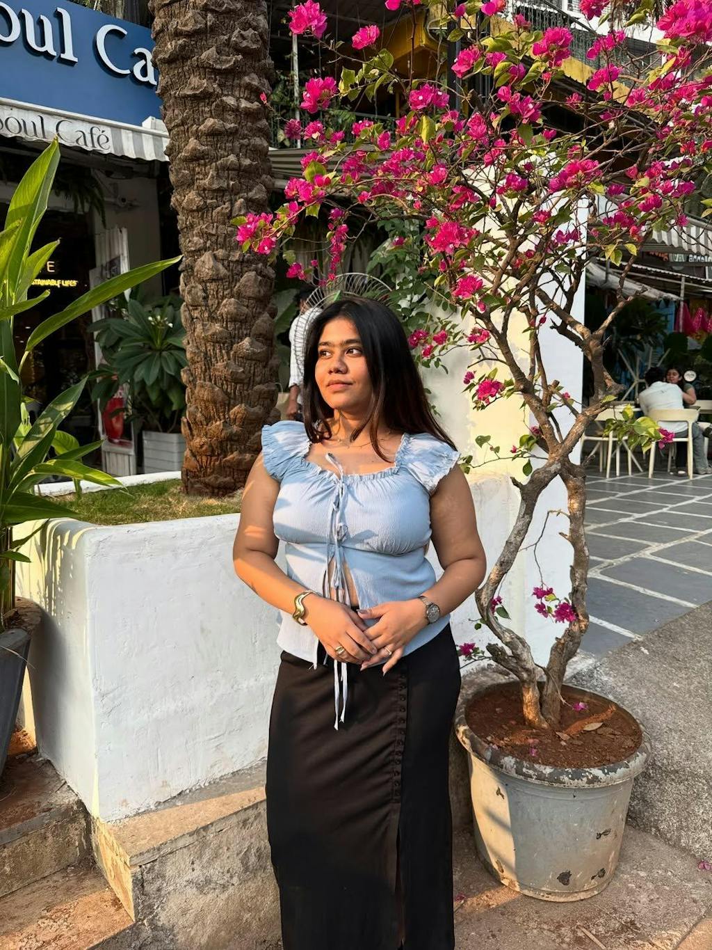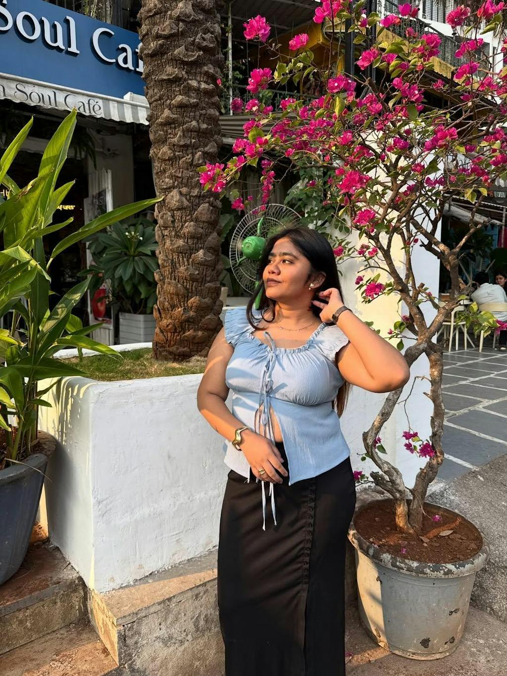 • Night glam: Mini skirt or tailored trousers + heels + minimal jewellery for a dressed-up vibe