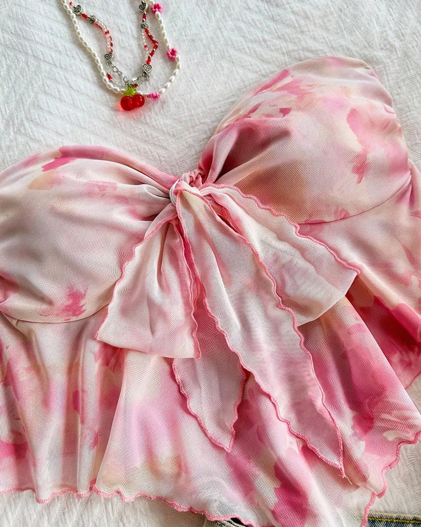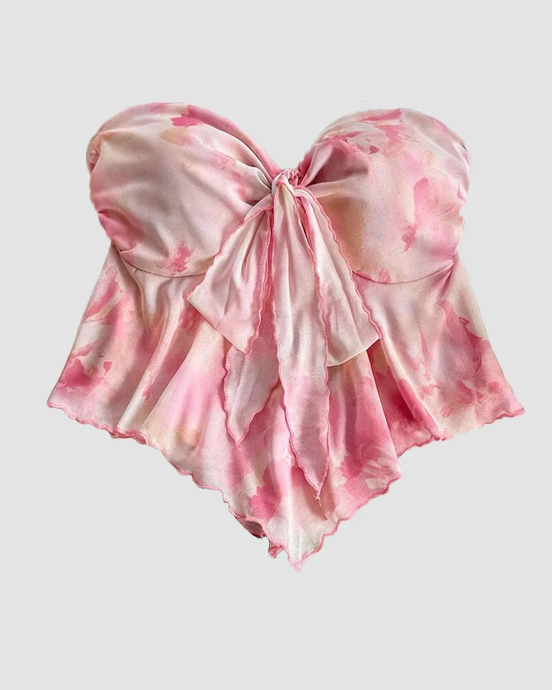 Bring flirty charm to your wardrobe with this floral tube top, designed with a statement tie-front detail and flowy hemline. The strapless cut adds a bold, feminine touch while the lightweight fabric ensures an easy and breathable fit.