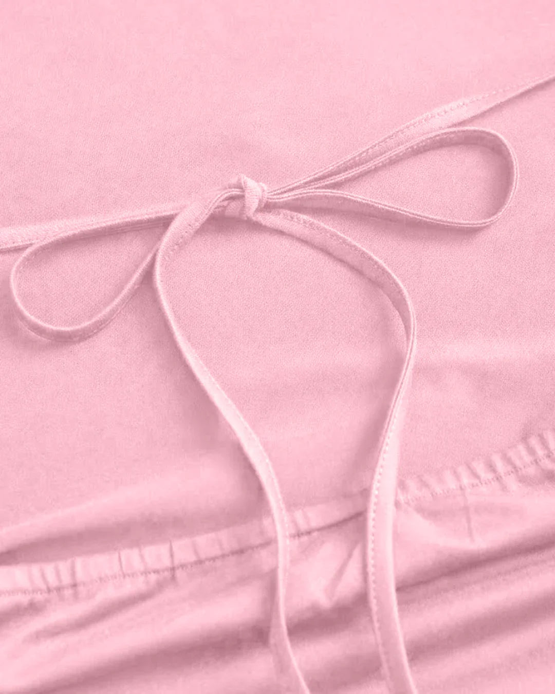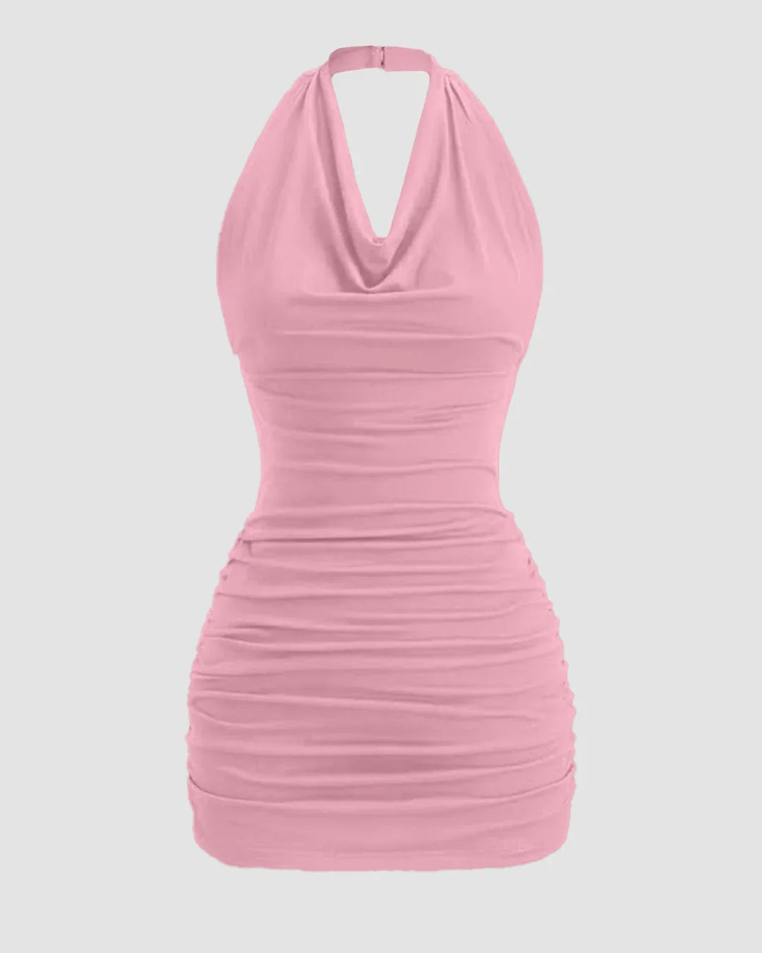 This bodycon mini dress is made to turn heads with minimal effort. Featuring a soft cowl neckline and a sleek sleeveless cut, it hugs your curves while keeping the look elegant and balanced. The backless design with tie straps adds a bold touch, while the rose pink shade brings a soft, feminine vibe that feels perfect for nights out.