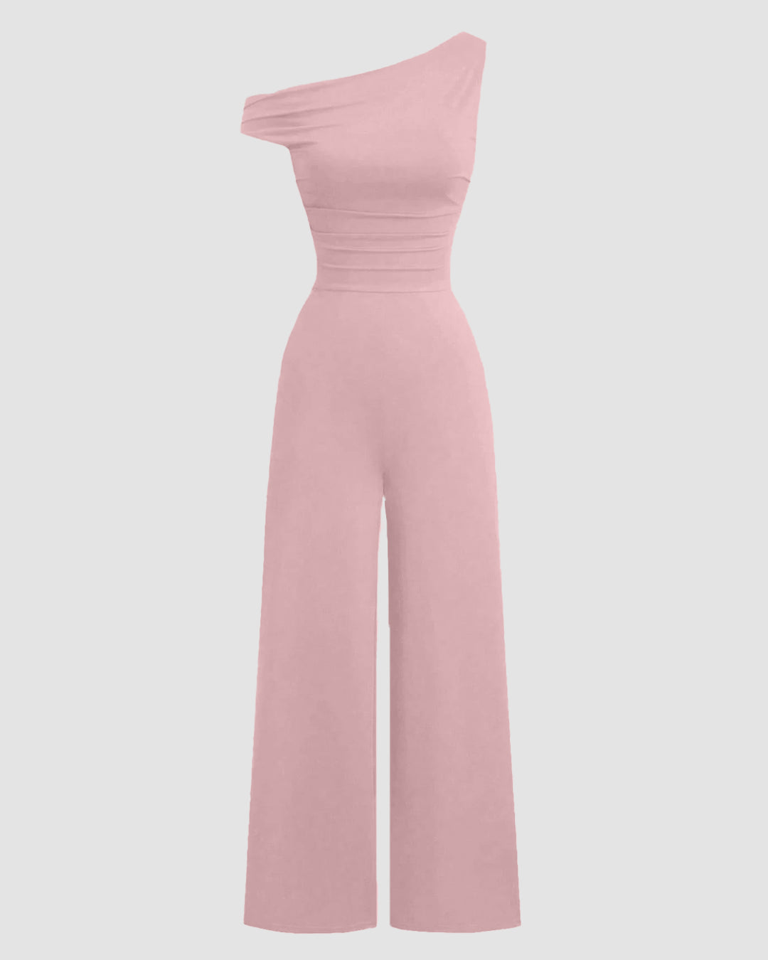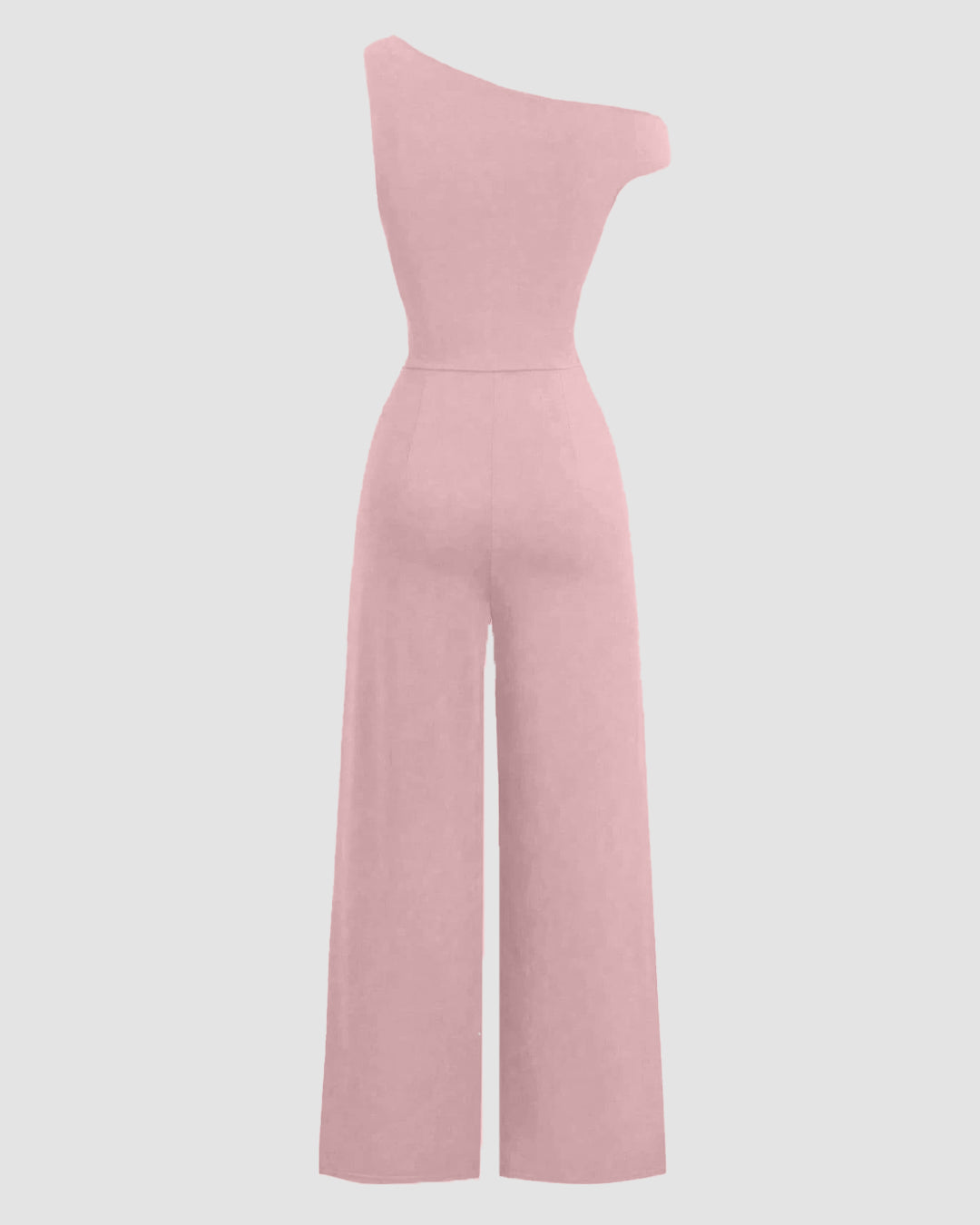 Dusty Pink Asymmetric Cinched Waist Wide-Leg Jumpsuit brings a clean and modern shape with its soft one shoulder style and smooth fitted top. The cinched waist creates a neat line while the wide legs fall straight for a relaxed but dressed up look. This Wide-Leg Jumpsuit is an easy pick for women who want something simple but stylish.