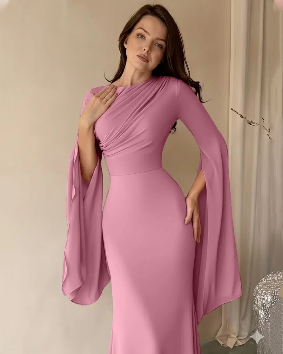 Elegant A-Line Maxi Dress with Slit Sleeves in Dusty Pink brings soft elegance with an easy, flowy silhouette that feels timeless and wearable. This a line maxi dress with sleeves is designed with a flattering A-line cut that gently flows from the waist, creating a graceful shape without feeling heavy. The slit sleeves add subtle movement and a hint of drama, while the maxi length keeps the look polished and elegant. Finished in a calm dusty pink tone, this a line maxi dress with sleeves works beautifully for moments when you want something simple yet elevated.