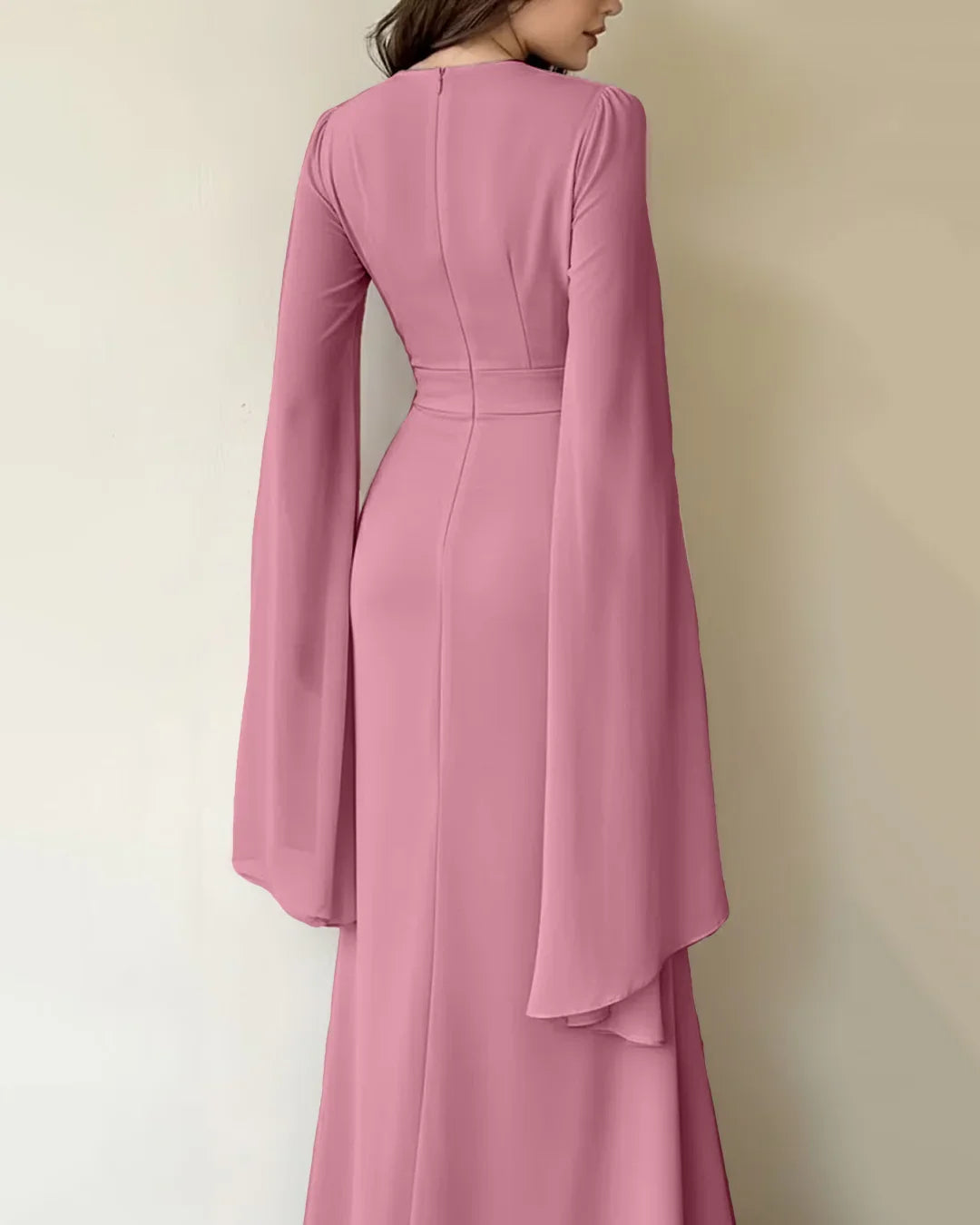 Elegant A-Line Maxi Dress with Slit Sleeves in Dusty Pink
