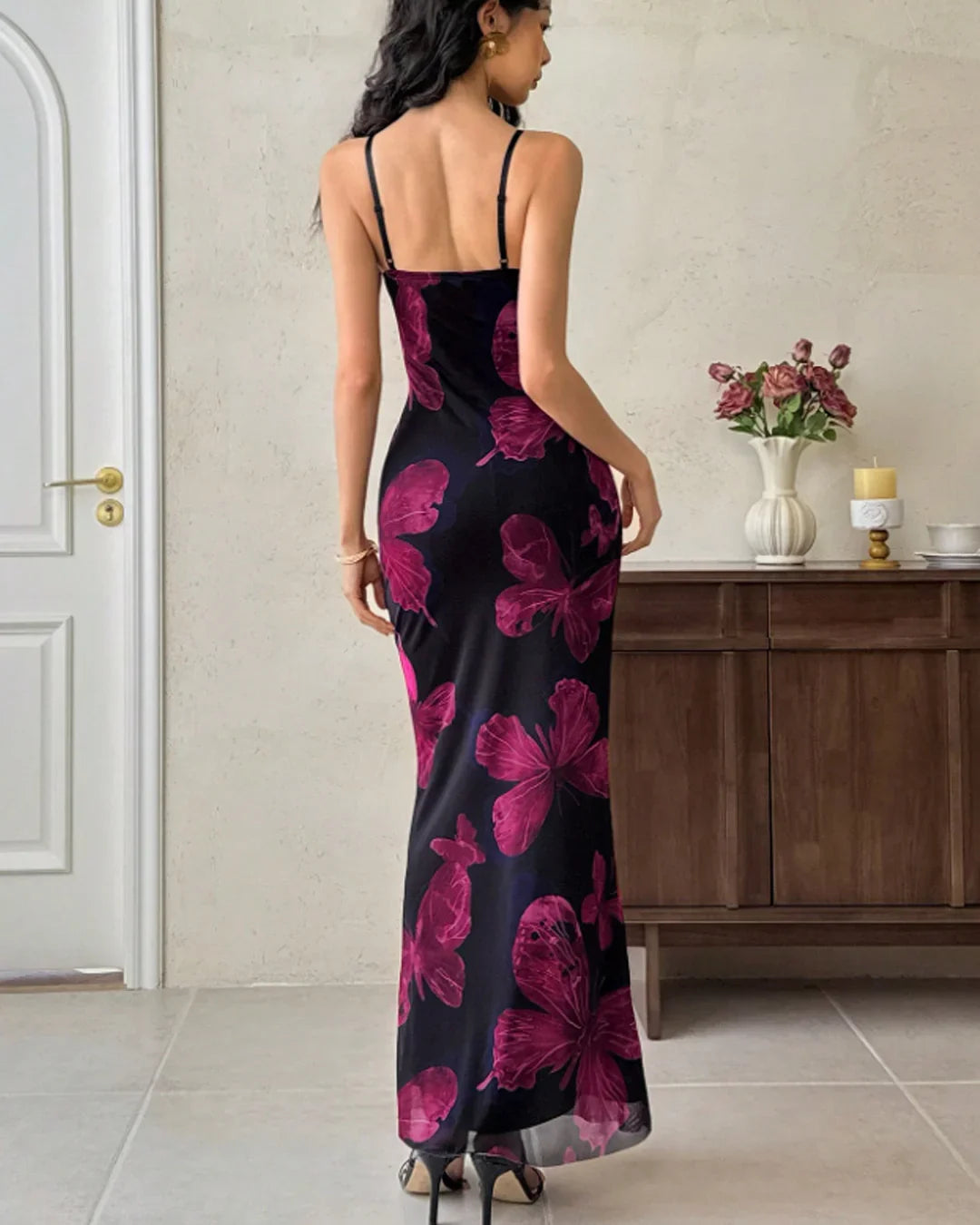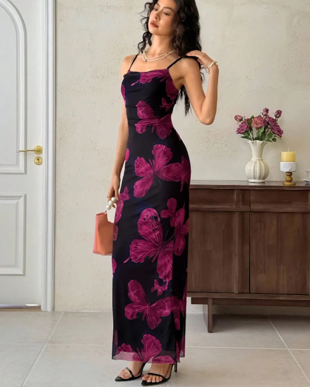 From brunch dates to evening plans, the Floral Print Slim Fit Spaghetti Strap Maxi Dress fits right in. It feels breathable, flattering, and easy to wear for long hours. Dress it up or keep it simple depending on your mood.