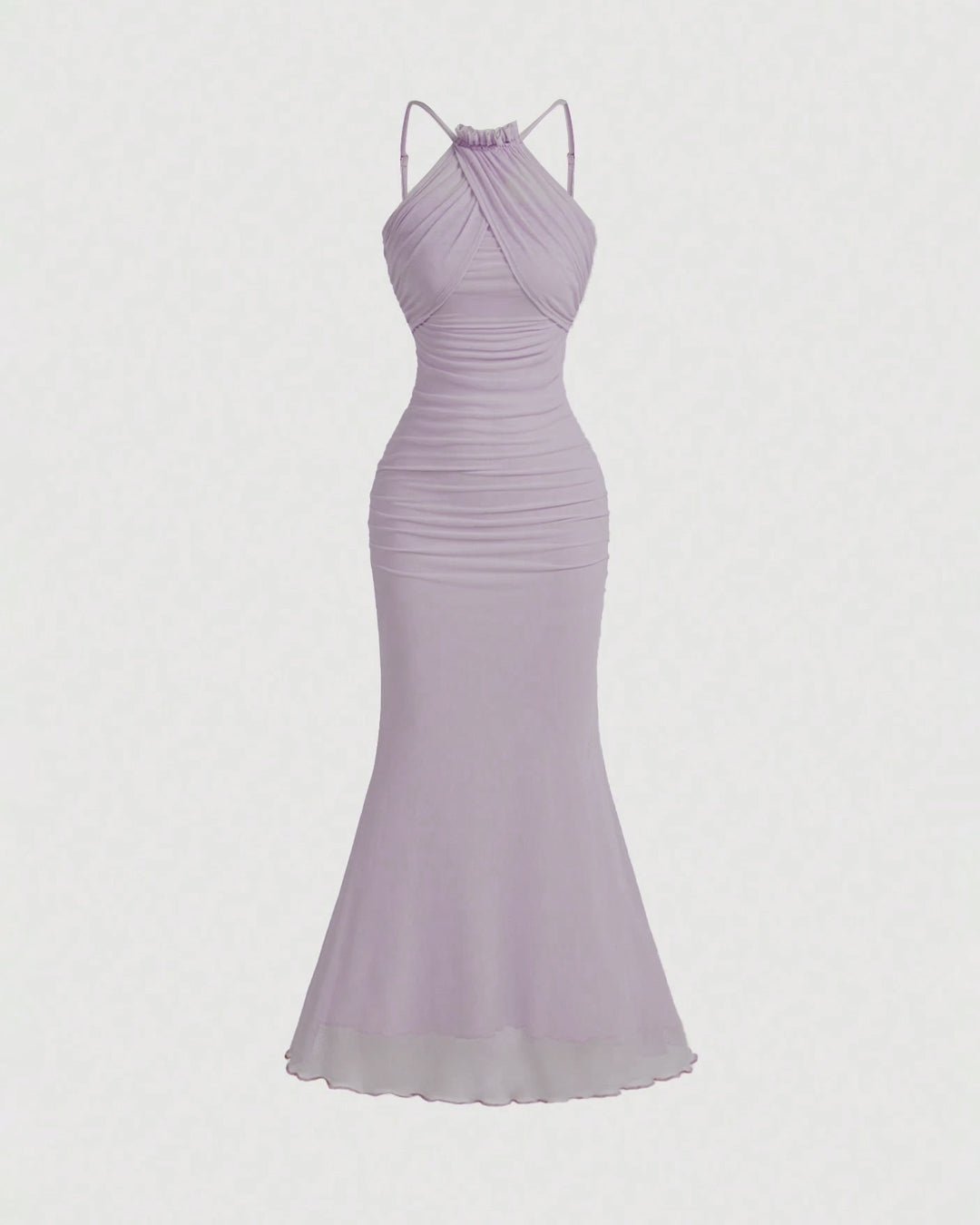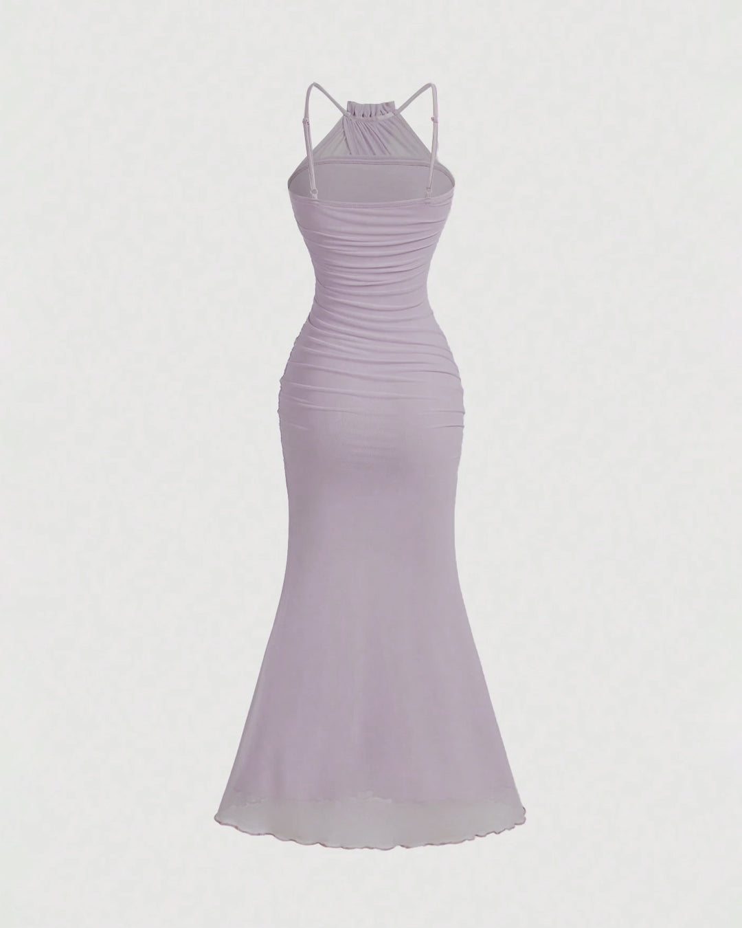 Halter Neck Fish Tail Hem Long Dress in Lilac