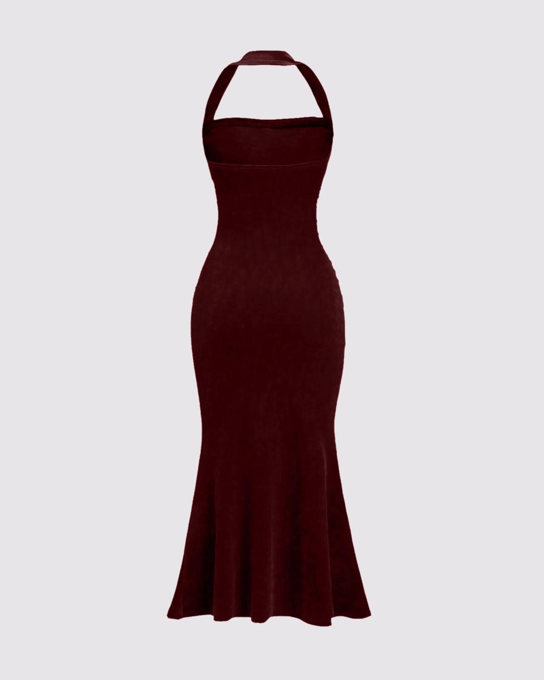 This red velvet bodycon dress is made for bold nights and confident moods. Designed with a sleek halter neckline and soft ruching around the waist, it hugs the body in all the right places. The rich red velvet finish adds instant drama, while the fitted silhouette keeps the look clean and sculpted. Smooth and plush to the touch, this red velvet bodycon dress feels luxe without being heavy. The flared hem balances the fitted shape and adds subtle movement when you walk.