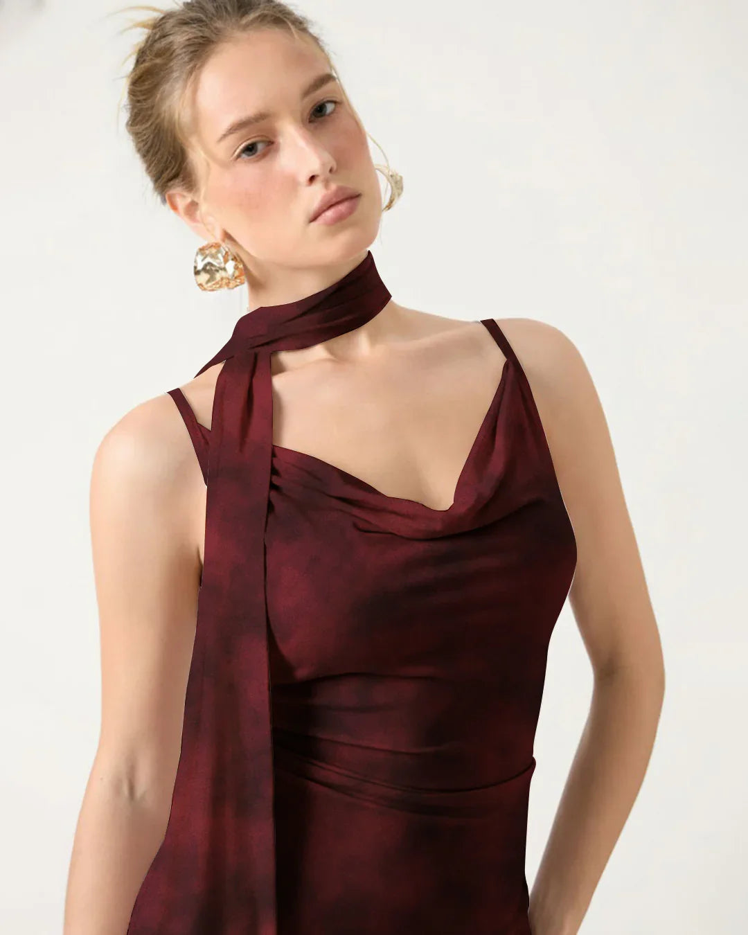 Jersey Cowl Neck Ruched Mermaid Maxi Dress With Scarf