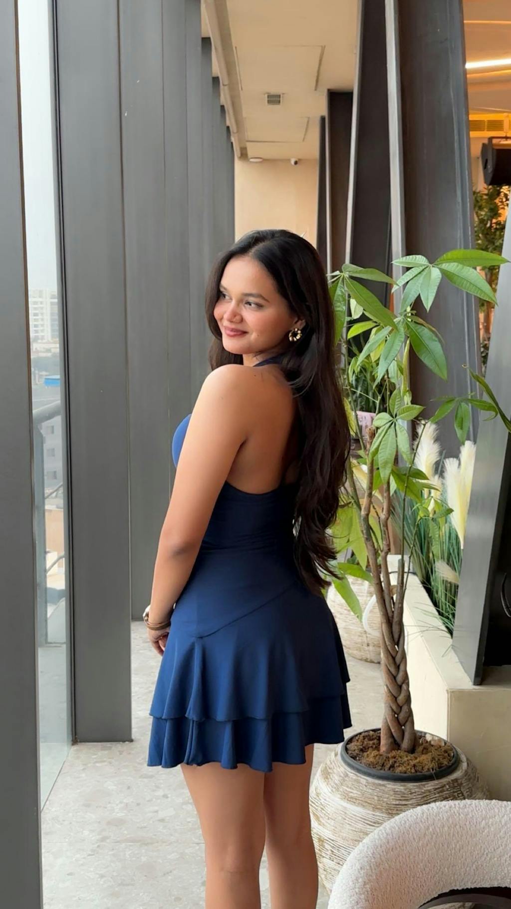 This womens skater dress brings a clean, flattering shape with an easy flow that feels light and effortless. Designed with a fitted upper and a softly flared skirt, it creates a balanced silhouette that sits well on the body. The halter neckline adds a modern touch, while the navy blue shade keeps it sleek and versatile. Made with a stretch-blend fabric, this womens skater dress feels smooth on the skin and moves comfortably with you. The layered hem gives subtle volume without feeling heavy, keeping the look fresh and playful.