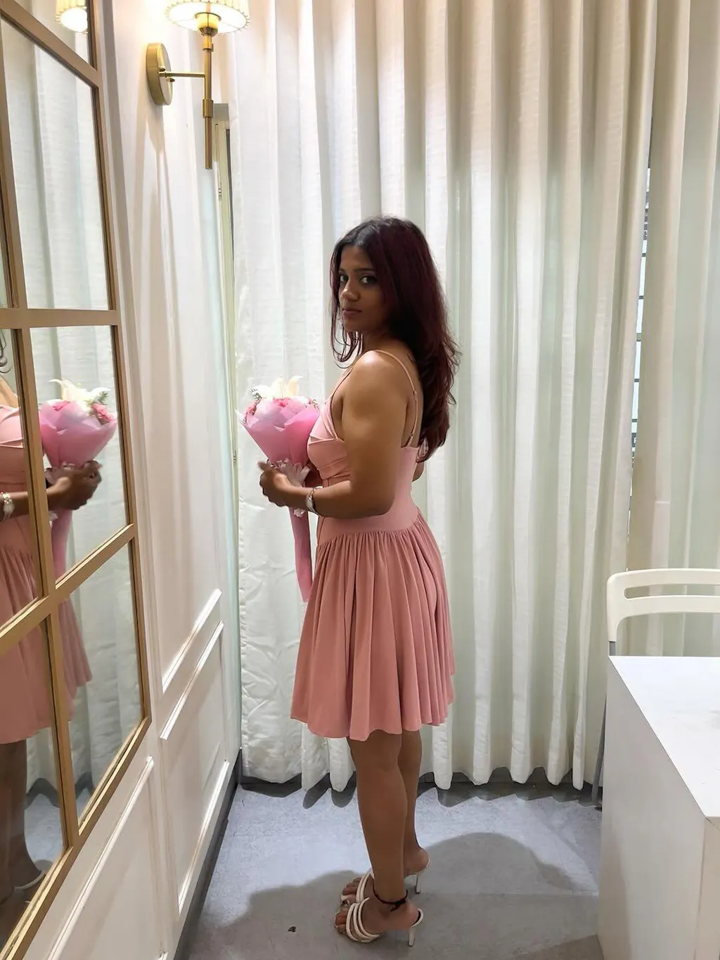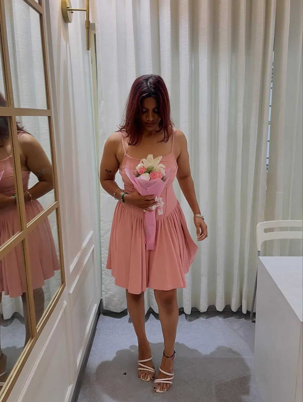 This cami dress is all about that flirty-meets-fitted vibe. With a pleated bust, structured waist, and a flowy skater-style hem, it flatters your shape while keeping it lightweight and twirl-ready. The corset-inspired seam lines add just enough edge to this sweet silhouette.