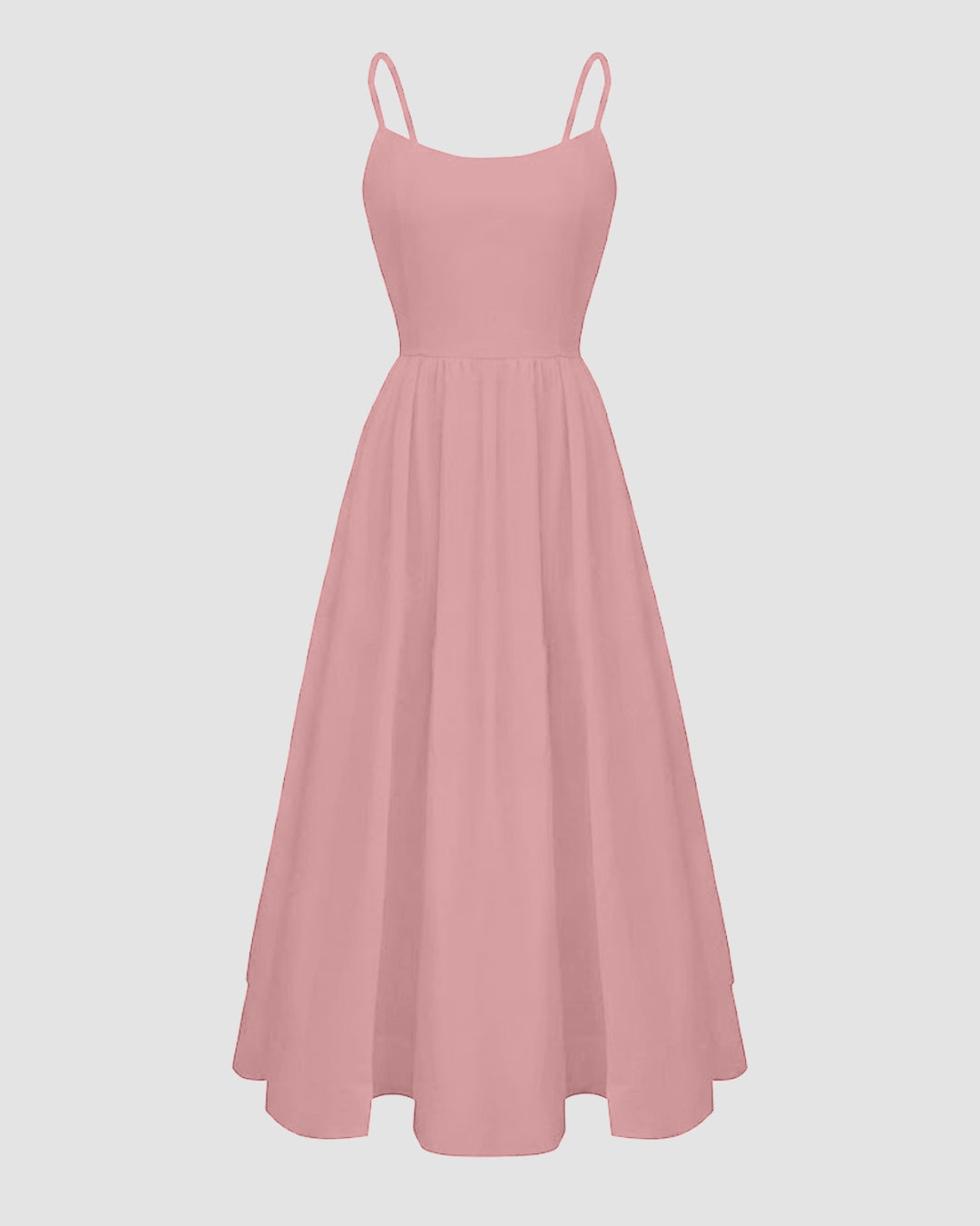 Powder Pink Spaghetti Strap Fit & Flare Midi Dress