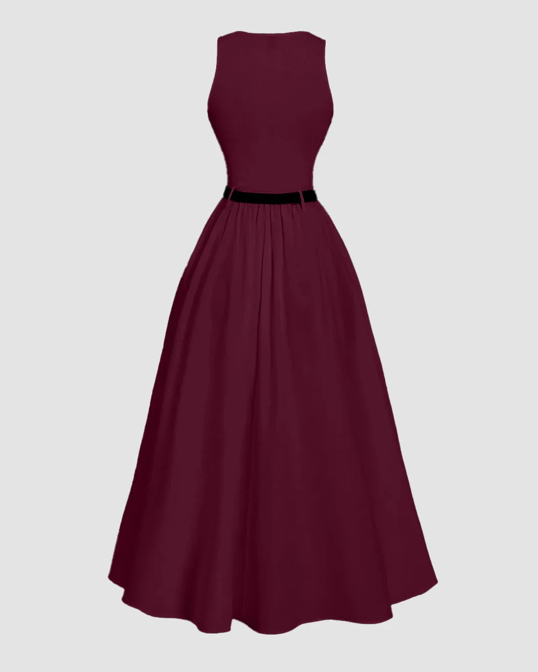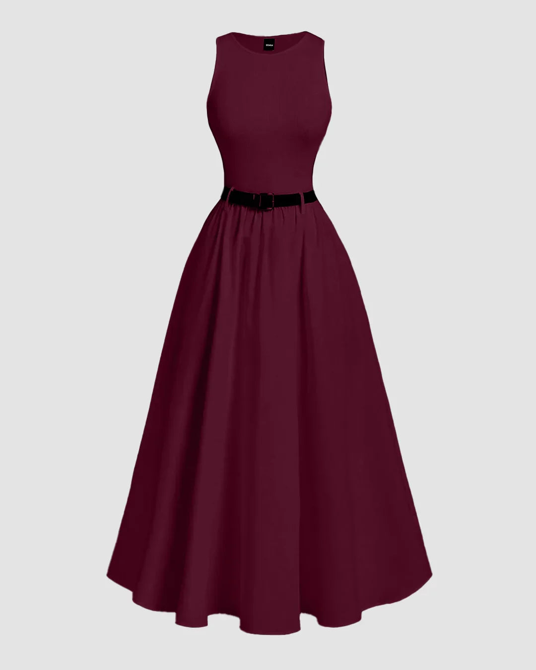 A line maxi dress that feels easy, polished, and timeless. This dress features a clean sleeveless cut with a softly structured bodice and a flowing skirt that creates a flattering A-line shape. The rich maroon tone adds depth and elegance, while the smooth fabric drapes beautifully without feeling heavy. Designed to sit comfortably at the waist, this a line maxi dress gives a balanced silhouette that looks put together with minimal effort.