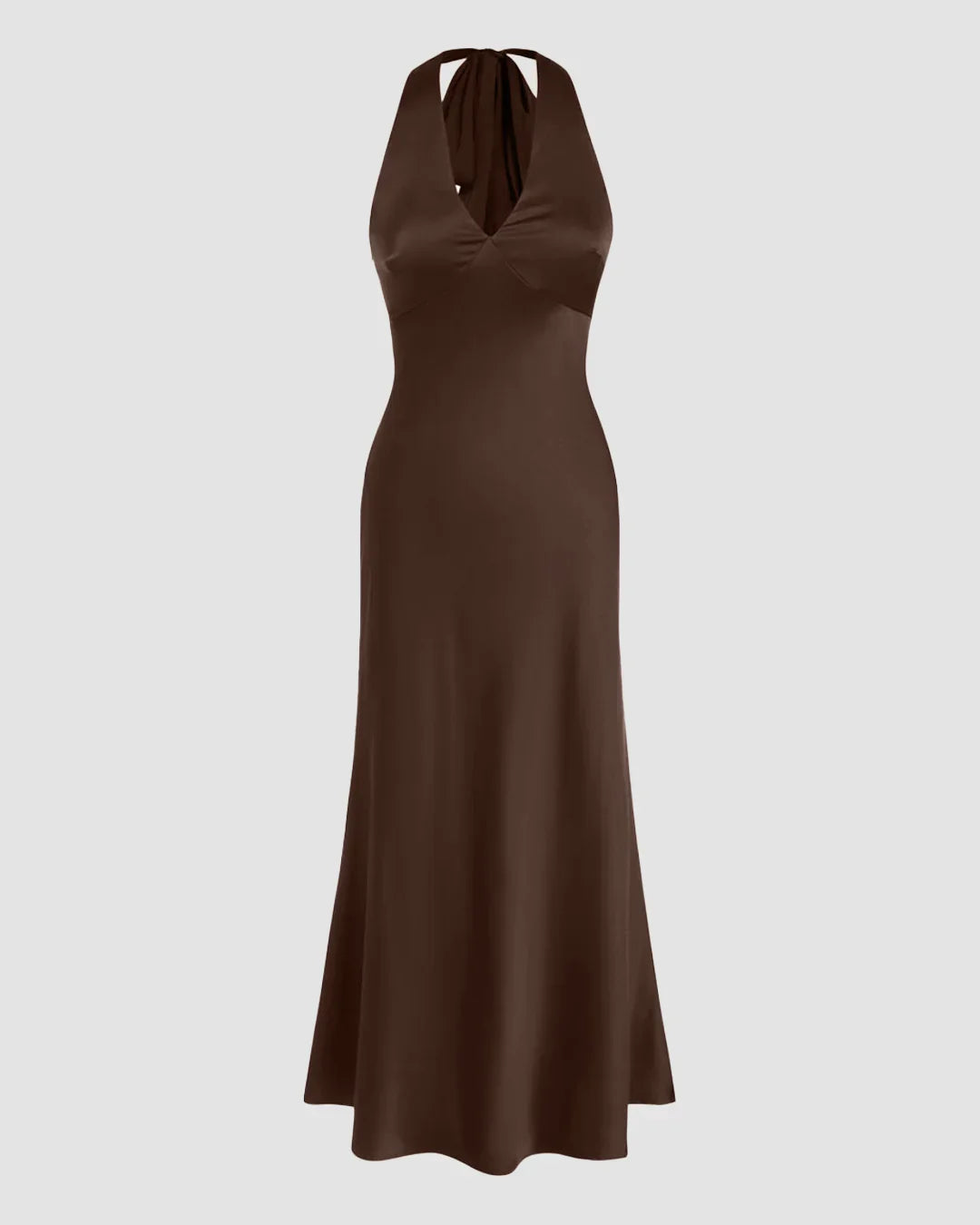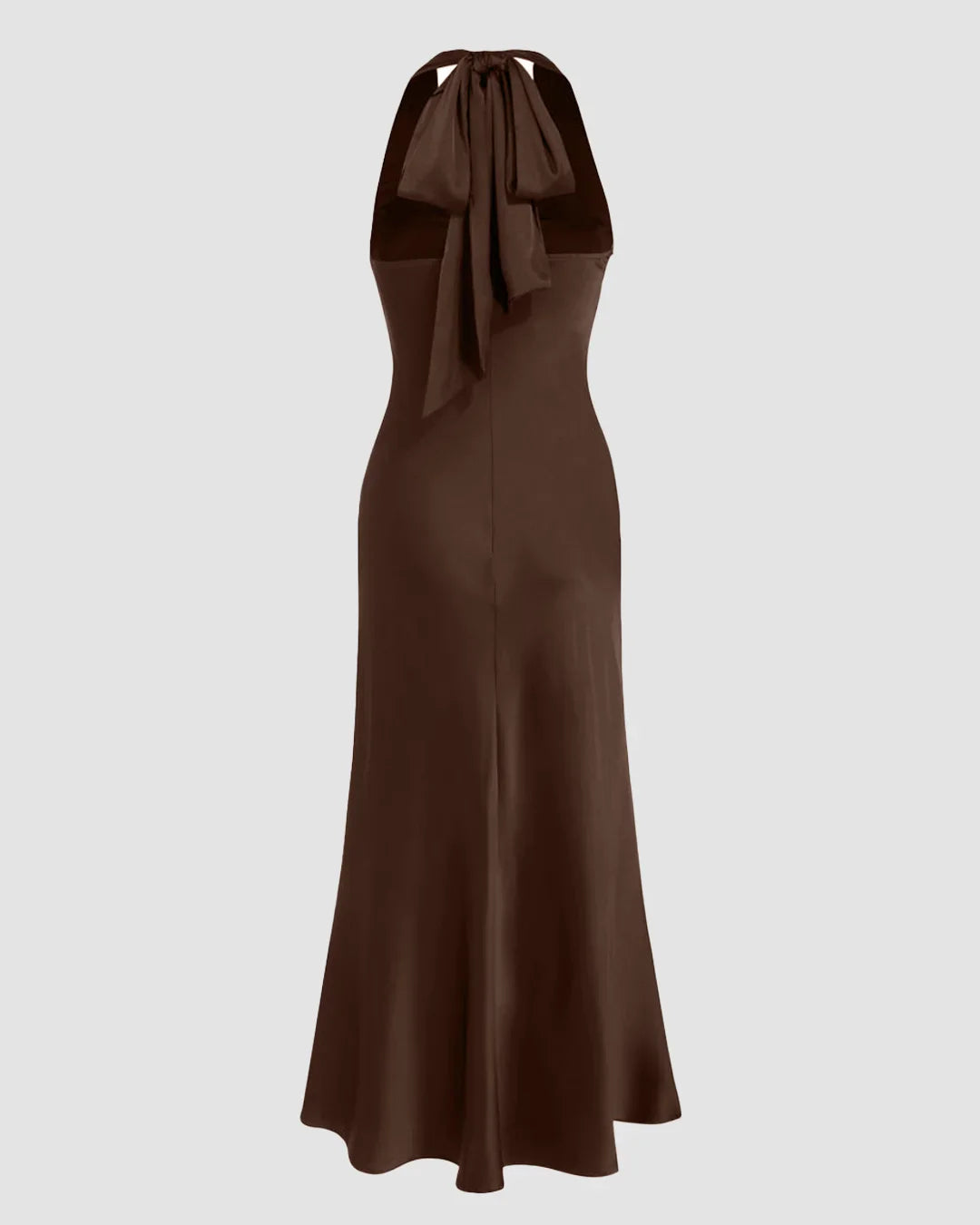 Satin V-neck Backless and Bowknot Mermaid Maxi Dress in Brown