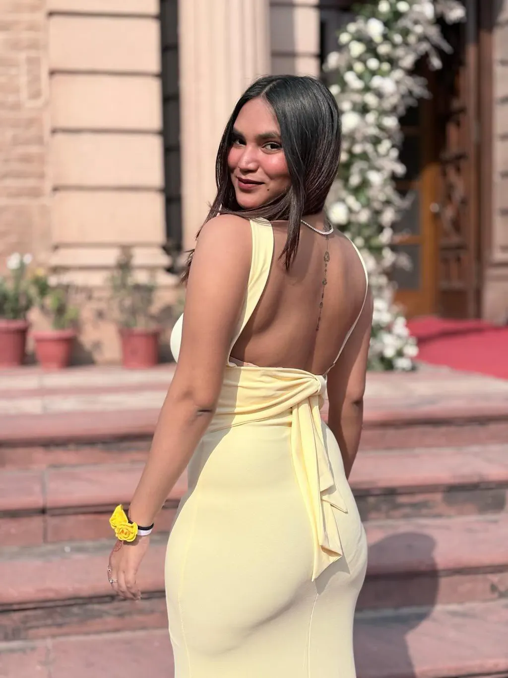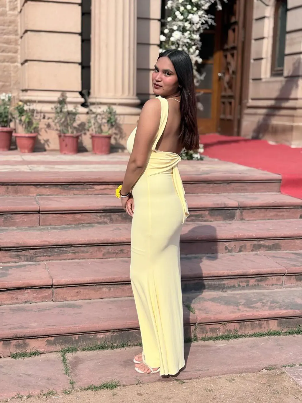 - Party Mode : Style your backless bodycon dress with block heels, a sleek clutch, and glossy lips. Let your hair in a bun or ponytail to show off that stunning back detail - it’s giving main character energy.