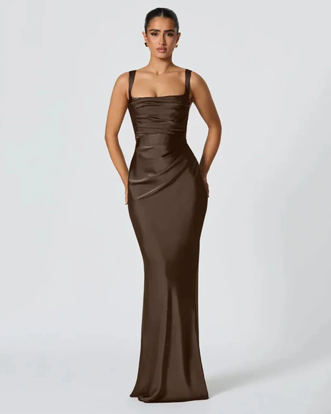 Crafted in smooth polyester, the fabric drapes neatly without feeling heavy, making it comfortable for extended wear. The fitted design keeps the look sharp without being restrictive, perfect for occasions where you want to look put together with minimal effort. From dinners to evening events, this Maxi Dress in Brown delivers understated elegance every time.