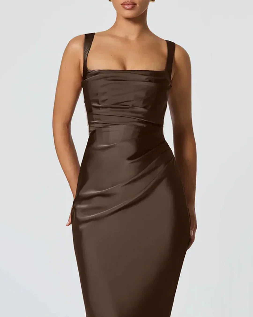 Sleeveless Fitted Maxi Dress in Brown is a sleek, timeless piece made for clean silhouettes and confident styling. Designed with a structured bodice and smooth fitted shape, this dress highlights the waist and flows straight down for an elegant finish. The sleeveless cut keeps it modern, while the rich brown tone adds a soft, luxe feel that works across seasons. This Maxi Dress in Brown is minimal, flattering, and effortlessly polished.