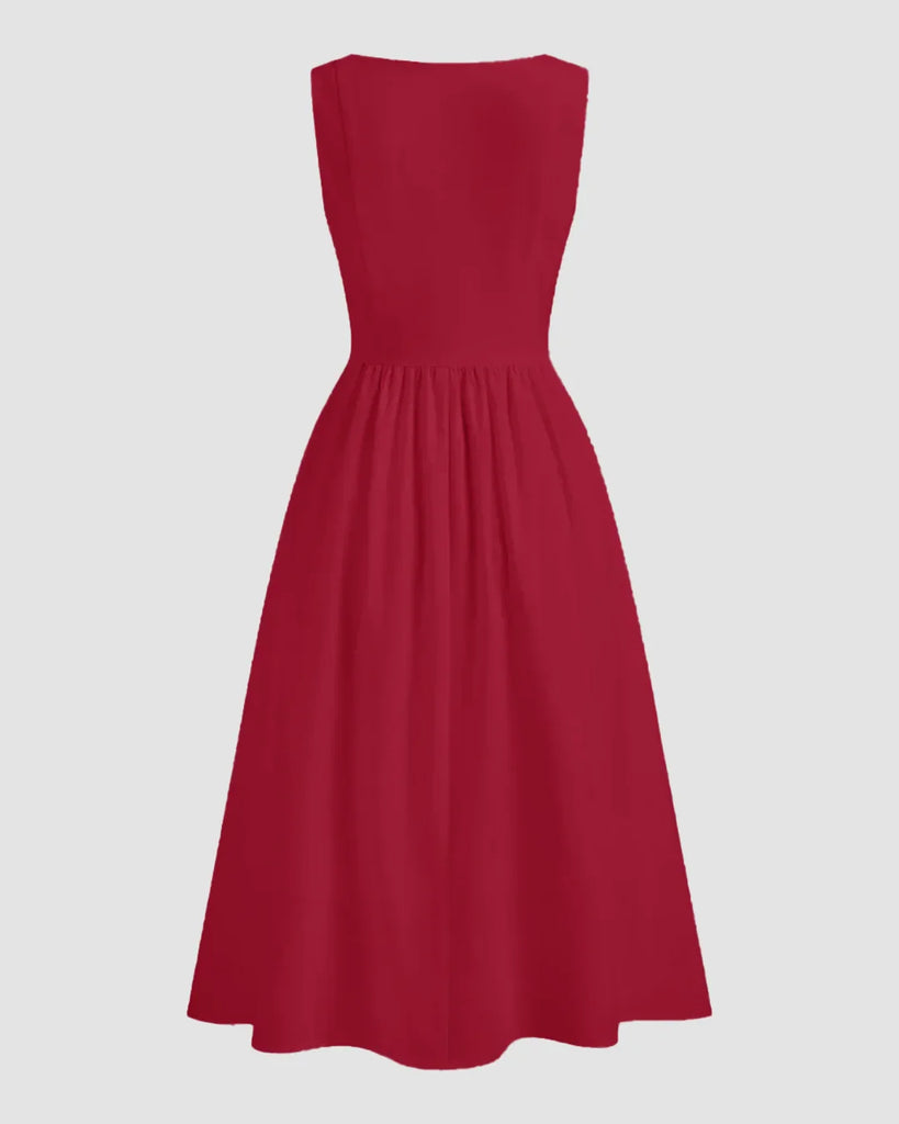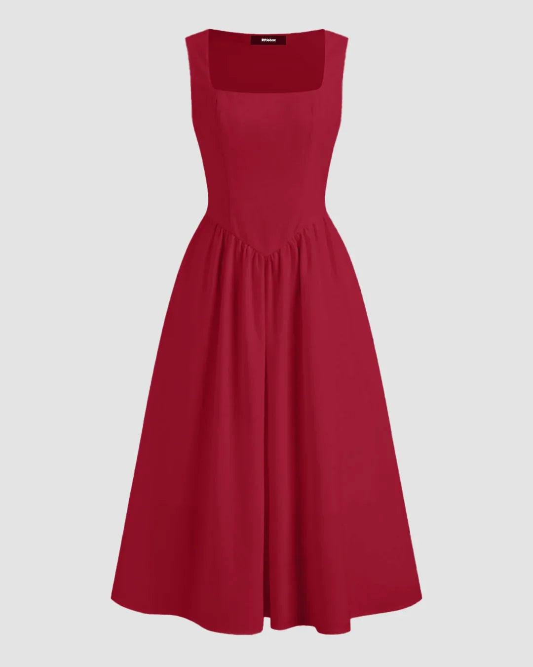 Sleeveless Square Neck A-Line Midi Dress in Cherry