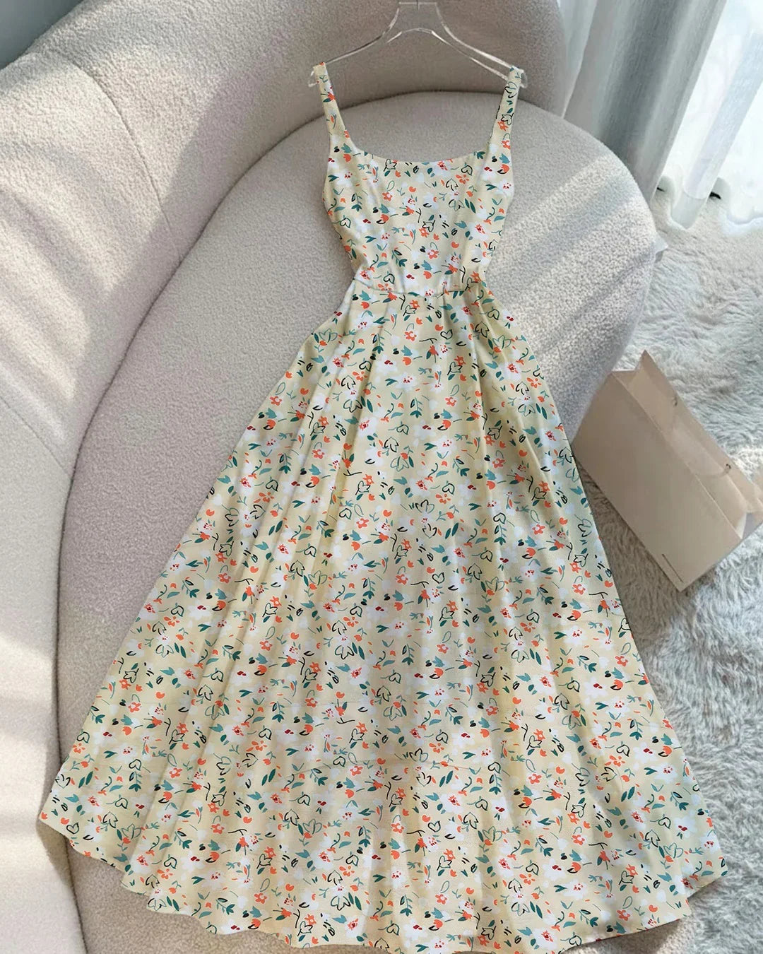 Sleeveless Square Neck Fit & Flare Floral Maxi Dress