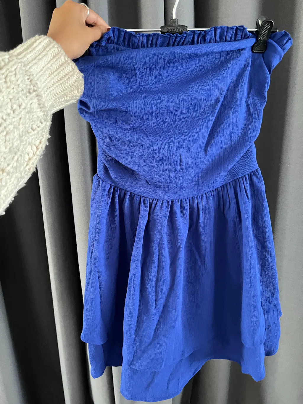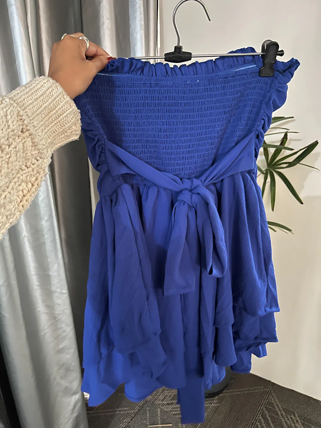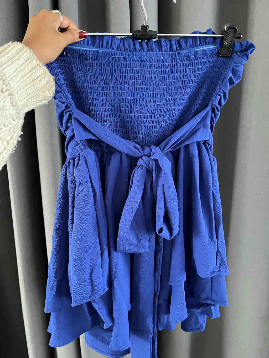 This womens strapless dress is made to stand out with its bold silhouette and playful volume. Designed in a vibrant blue tone, it features a fitted bodice that highlights your shape beautifully. The layered ruffle skirt adds movement and drama, giving this womens strapless dress a flirty yet chic vibe. The clean strapless neckline keeps the look sleek and balanced. This womens strapless dress blends structure and softness for a confident party-ready finish.
