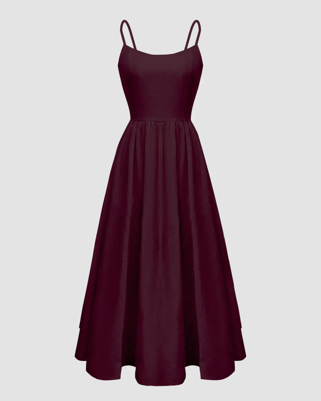 Spaghetti Strap Fit & Flare Sleeveless Midi Dress in Burgundy