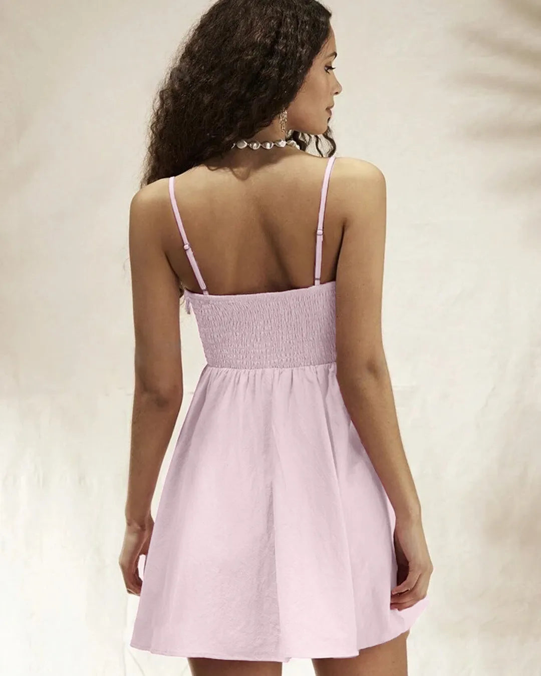 The Spaghetti Strap Ruched Bust Shift Dress In Pink is all about easy summer vibes with a flattering fit. Made from 100% breathable cotton, this spaghetti strap dress features a ruched bust and flowy shift silhouette that moves with you. Lightweight and versatile, it’s perfect for sunny outings, brunches, or casual evenings. This spaghetti strap dress blends comfort with chic appeal, making it a must-have in your wardrobe rotation