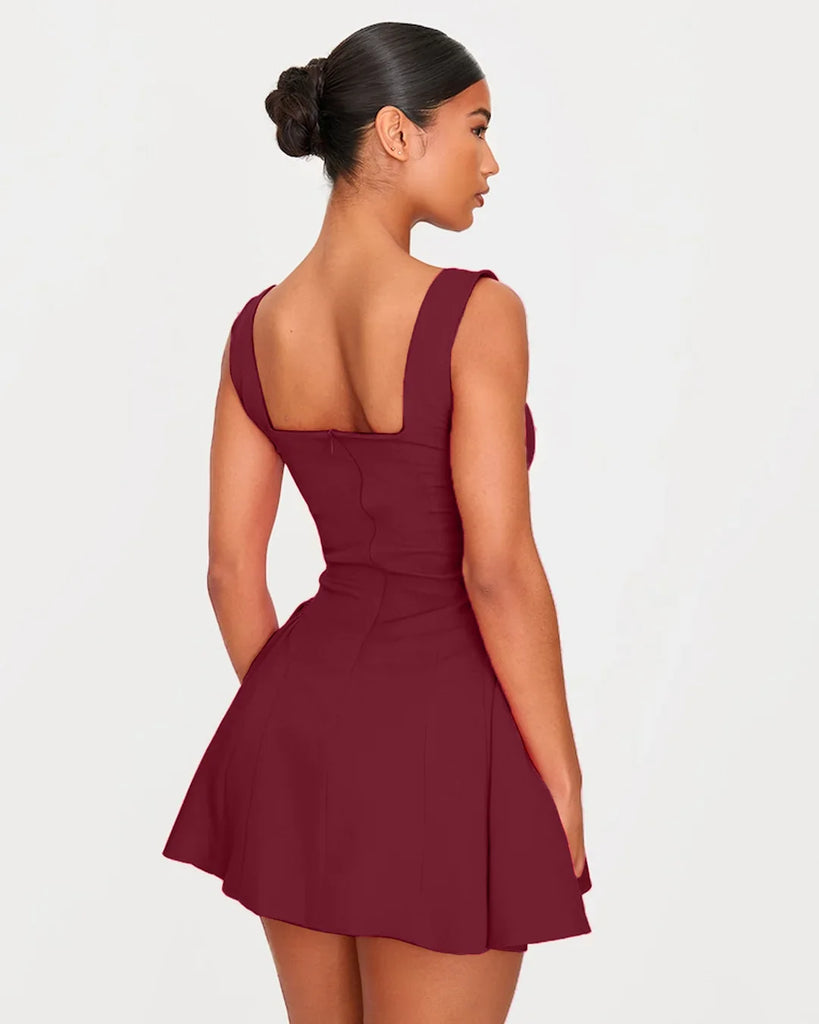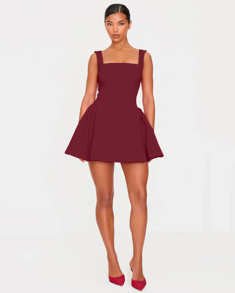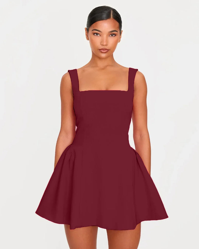 Square Neck Fit & Flare Mini Dress in Burgundy