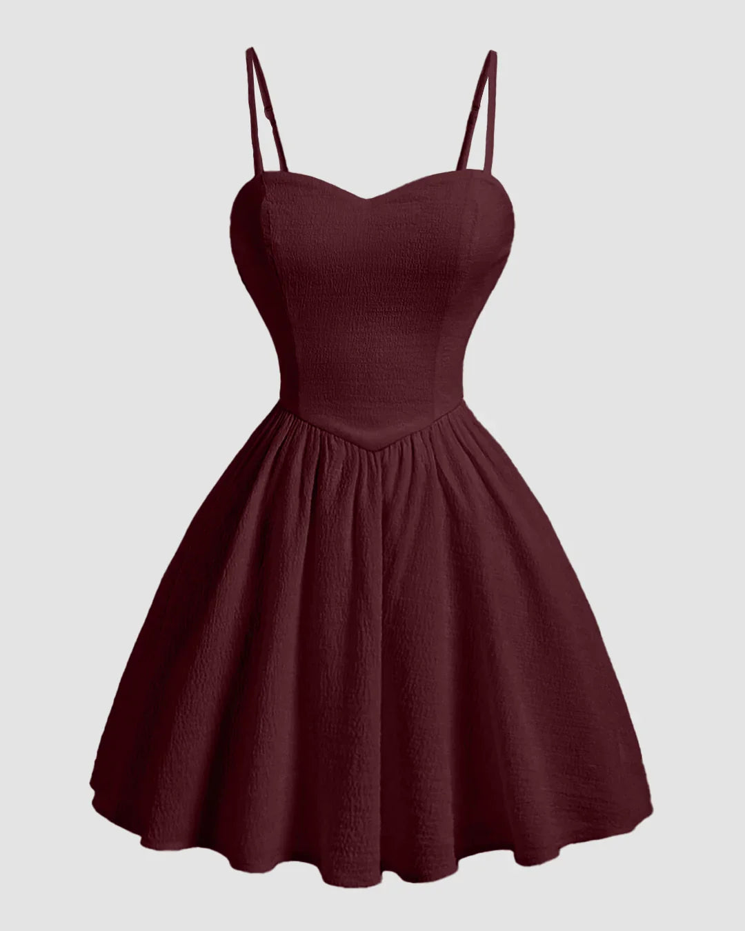 Sweetheart Neck Fit & Flare Sleeveless Mini Dress in Maroon